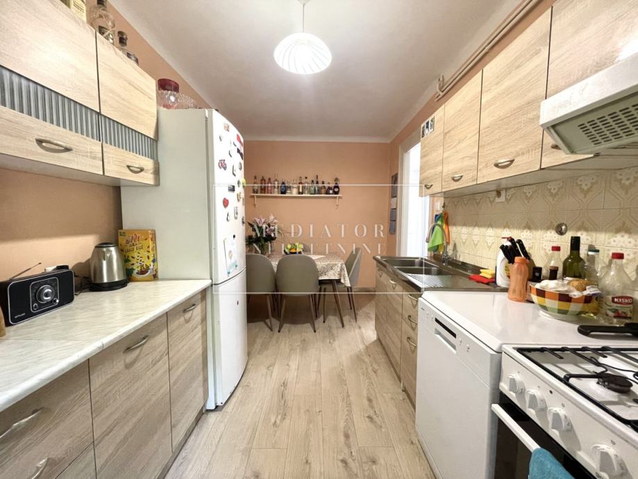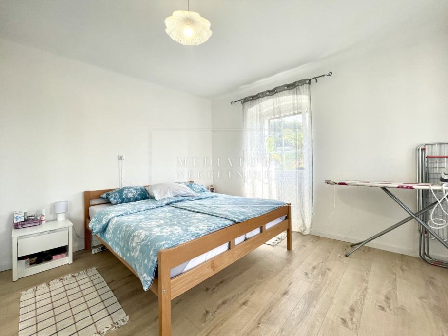 Stan je u potpunosti renoviran – ugrađena je nova PVC stolarija, sustav grijanja riješen je peći na pelete, dok je za rashlađivanje predviđena klima jedinica. Južna orijentacija stana osigurava obilje dnevne svjetlosti i ugodnu atmosferu tijekom cijelog dana. Prodaje se potpuno namješten i opremljen, spreman za useljenje bez dodatnih ulaganja.