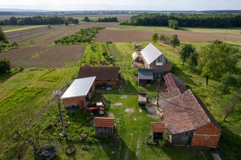 Opis imanja: Imanje koje nudimo na prodaju sastoji se od približno 13 hektara obradivih površina, kuće netto površine 172 m² te raznih pomoćnih zgrada i štala.