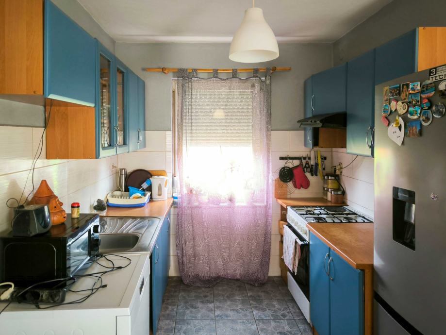 Prizemlje: dvije spavaće sobe, kupaonica, spremište, kuhinja s blagovaonicom i dnevni boravak.