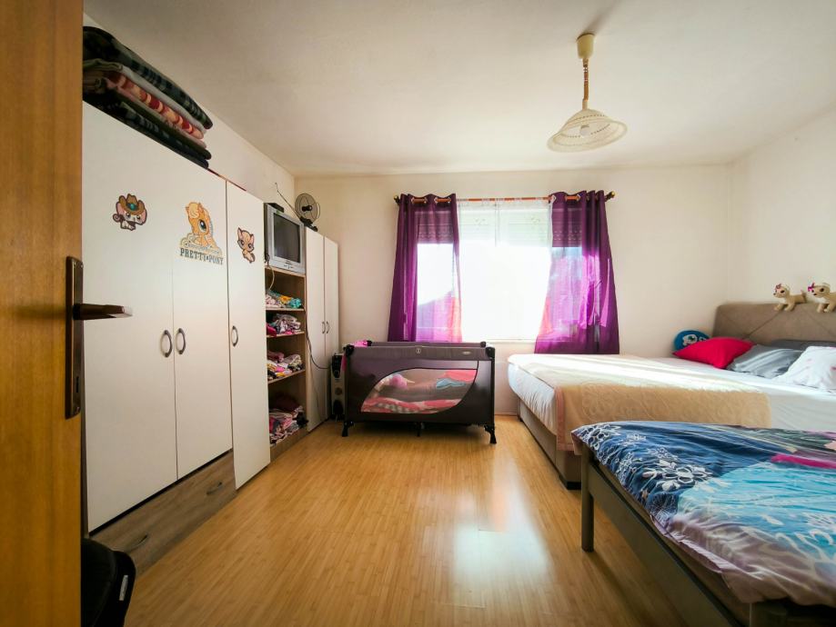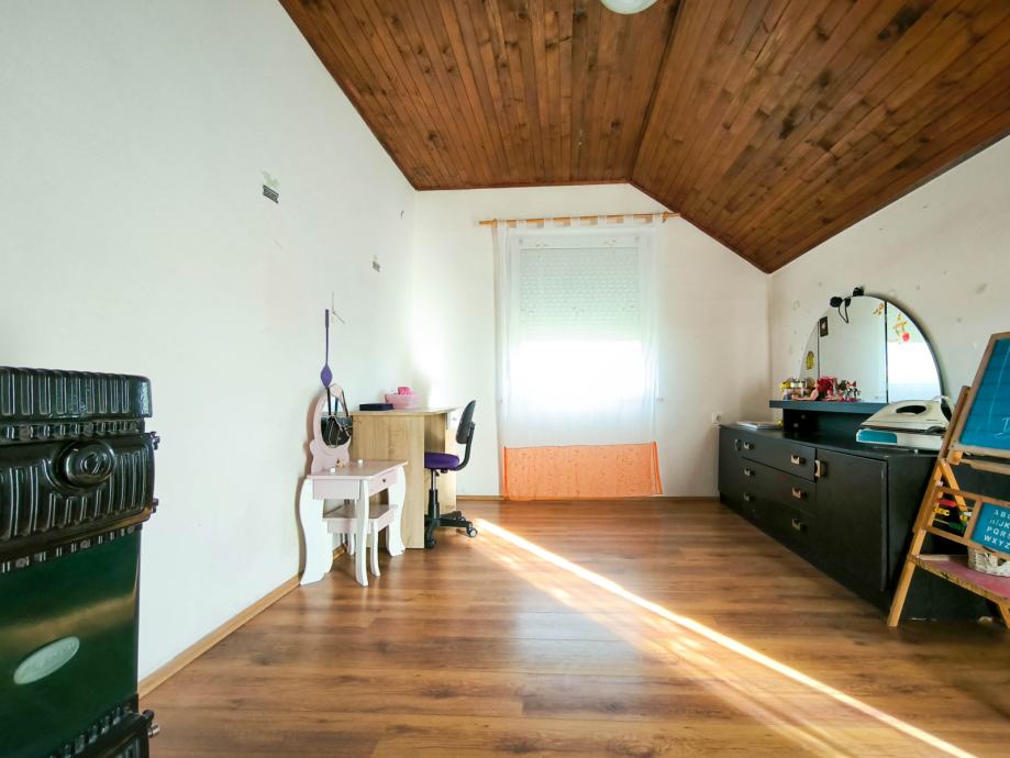 Kat: tri spavaće sobe te nedovršeni dio kuće predviđen za open space dnevni boravak, kuhinju, blagovaonicu i dodatnu kupaonicu.