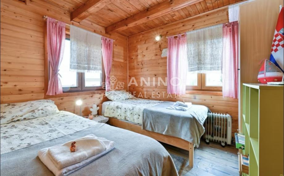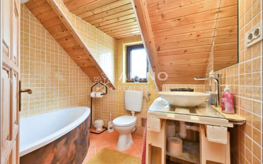 • Konstrukcija kuće: kombinacija masivnog drveta i klasične monolitne gradnje s odličnom izolacijom (stiropor i kamena obloga), promjenjen krov ove godine