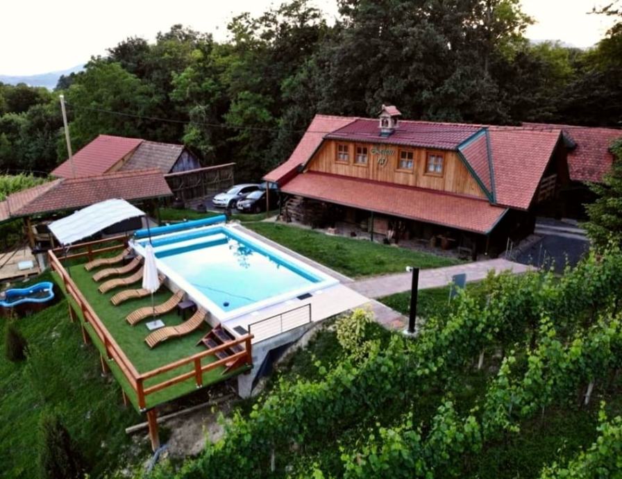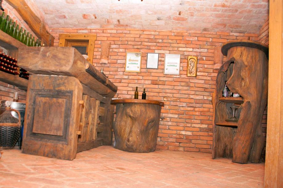 Vinski podrum, vinoteka, sala za proslave, jacuzzi, sauna, vanjski bazen 32 m2 (bazenska oprema) + terasa 8x3 m2, pečenjara (roštilj, peka, krušna peć), prostor za djecu, vanjski prostor za sjedenje, stolni nogomet.