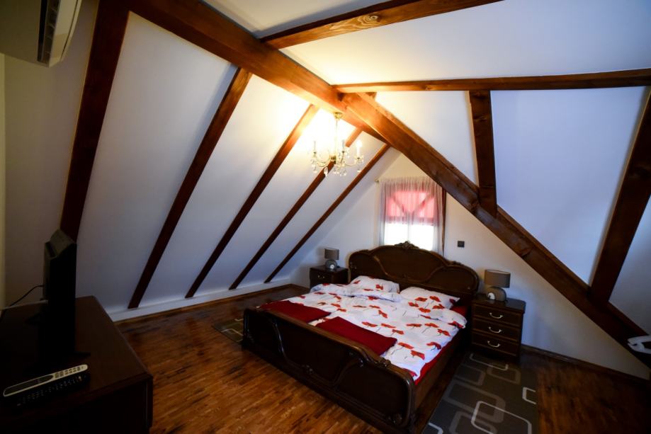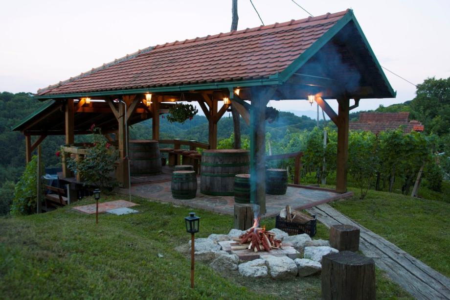 2. Kuća 66 m2, prizemlje + kat (kupaona, sauna, kuhinja, dnevni boravak, dvije sobe na katu) + vinski podrum 32 m2 + nadstrešnica 8x3