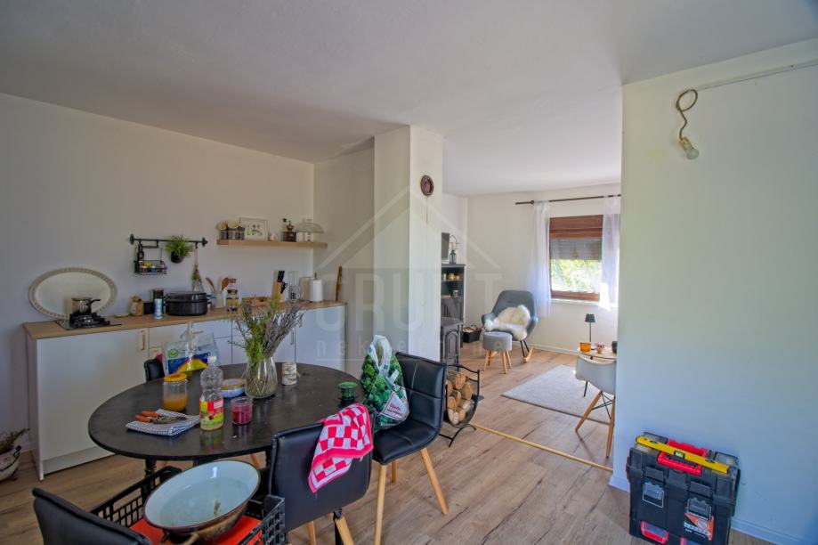 Na imanju se nalazi jednosobna vikendica, stambene površine od 35 m2 koja se sastoji od kuhinje sa blagovaonicom, kupaonice te sobe.