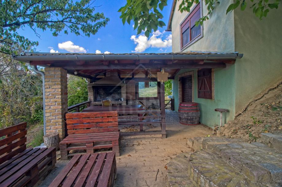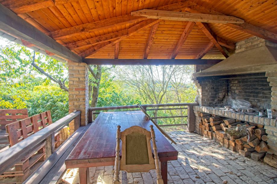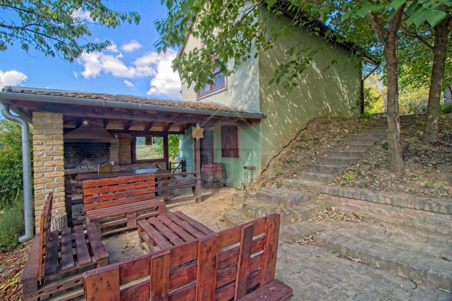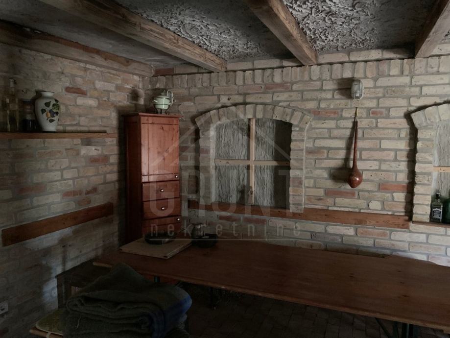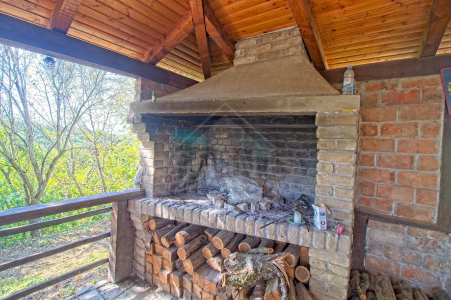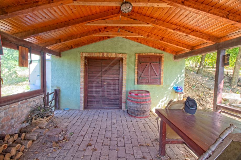 Ispod cijele vikendice se prostire uzidani gator sa konobom od preko 40 m2. Iza vikendice se nalazi natkrivena terasa sa velikim zidanim roštiljom.