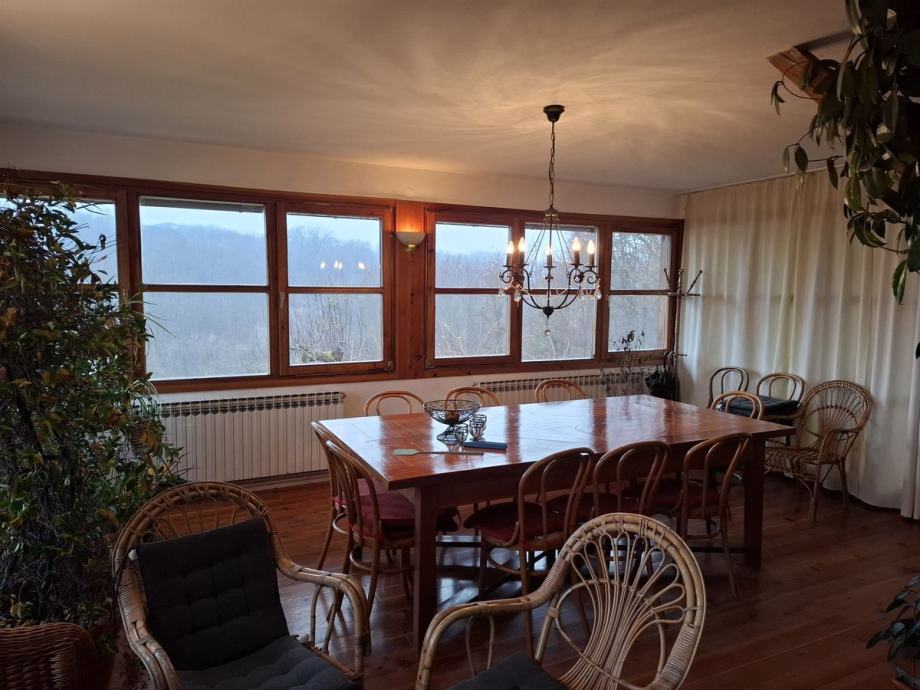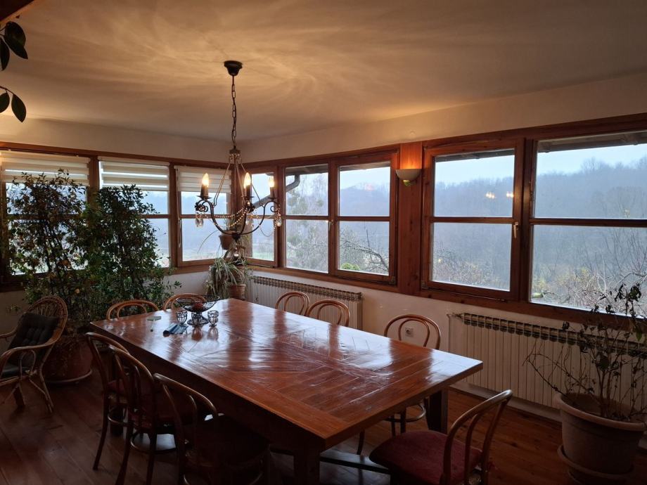 Prodaje se prekrasno imanje u Merhatovcu sa uređenom kućom na zemljištu od 6746 m2. Kuća je komplet uređena i sastoji se od prizemlja, visokog potkrovlja i podruma. Prizemlje: hodnik, WC, kuhinja, balogovaona, stepenice za potkrovlje, veliki dnevni boravak sa kalijevom peći na drva i velika natkrivena terasa. Visoko potkrovlje: predsoblje, dvije spavaće sobe i svaka ima vlastitu kupaonicu. Podrum: hodnik, 3 velike prostorije i vinski podrum. U sklopu kuće su dvije garaže dimenzija 8mx6m