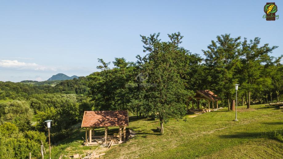 Dio imanja od cca. 1 ha, ograđeno pletenom žicom (1,8 m) na stupovima od agacije unutar čega je napravljen drveni objekat sa ukopanim spremnikom za vodu cca.2000 litara.