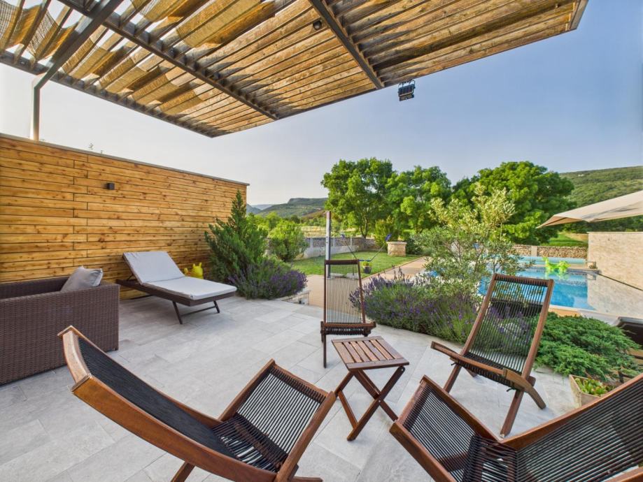 Izlaskom na prostranu terasu imate pristup bazenu i predivnom prirodnom okruženju.