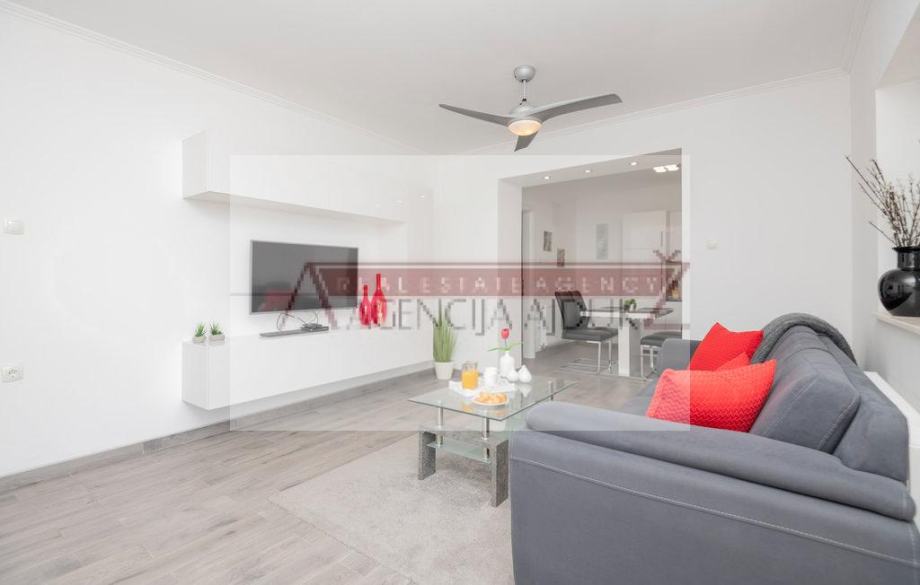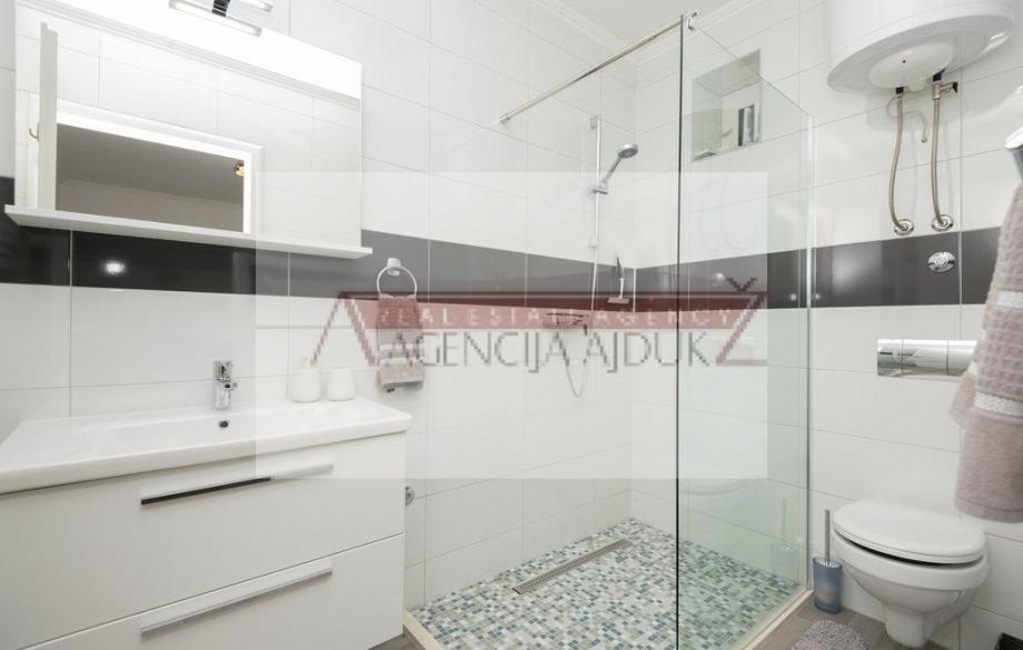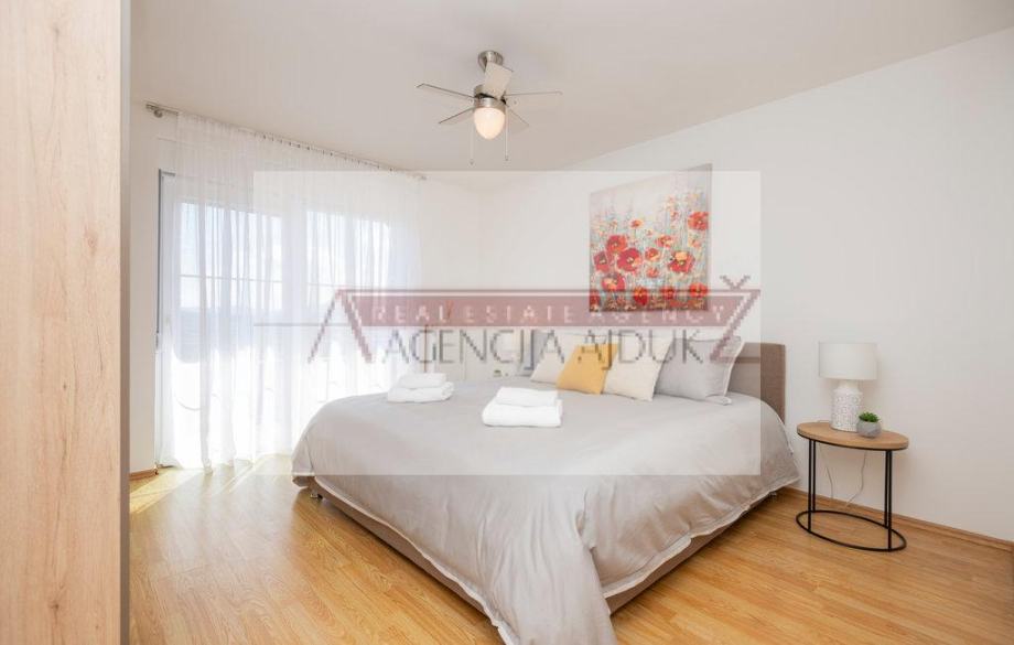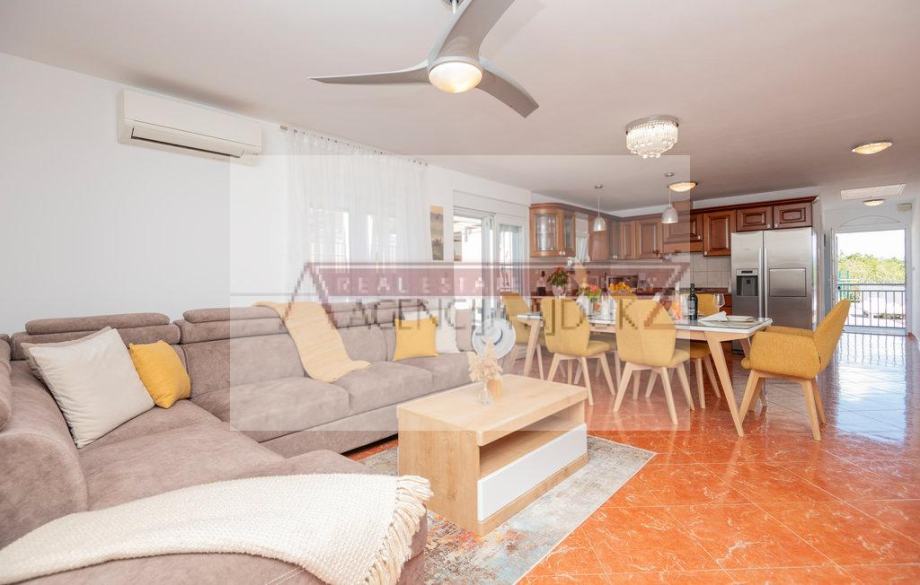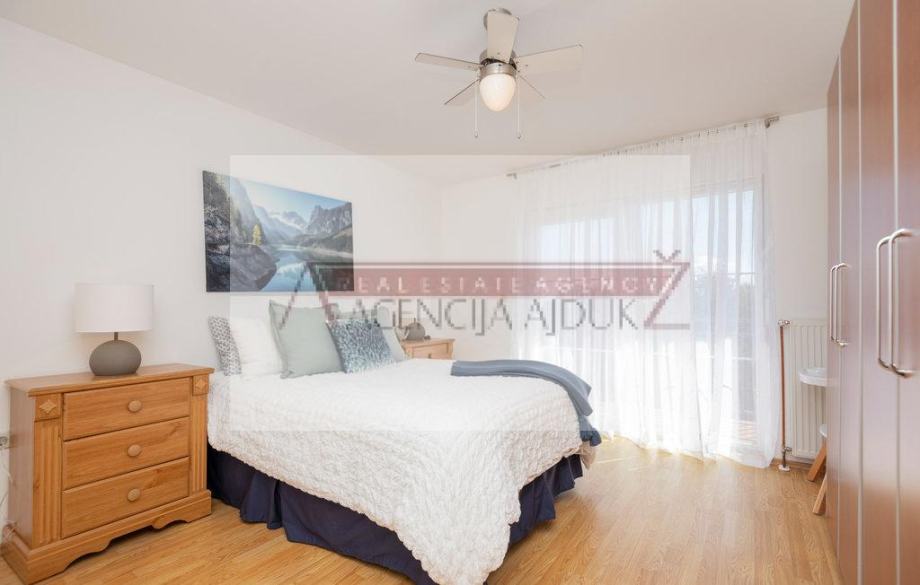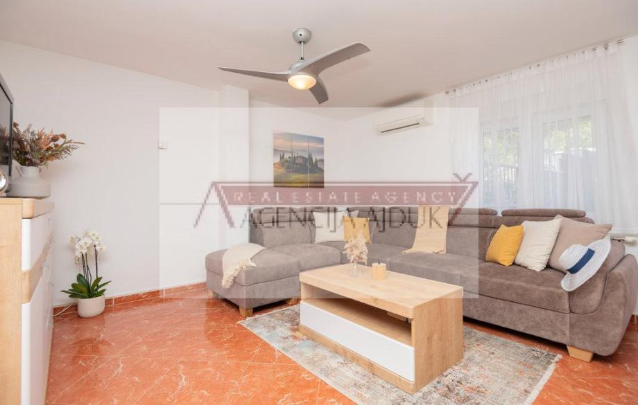 Kuća se u naravi sastoji od 2 apartmana. U prizemlju se nalazi veliki dnevni boravak sa kuhinjom i blagovaonicom, dvije spavaće sobe te kupaonica. na katu je veliki i prostrani apartman koji se sastoji od 3 spavaće sobe, kuhinje sa blagovaoicom i dnevnim boravkom, veliki balkon, kupaonca te manji wc.