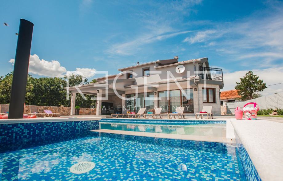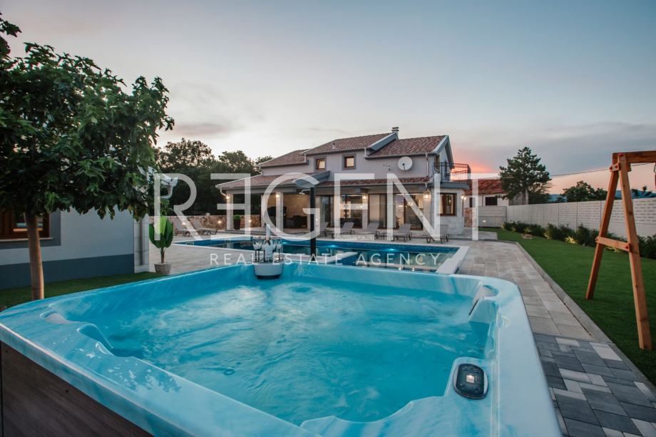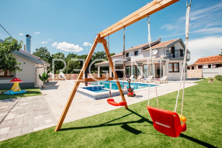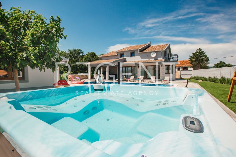 Posredujemo pri prodaji luksuzno uređene nekretnine u srcu Imotskog. Vila površine 277 m2 nalazi se na mirnoj lokaciji, savršenoj za dulje obiteljske odmore i razne proslave. Idealna je za turistički najam i pruža mogućnost nastavka uhodanog posla.U prizemlju vile nalazi se dnevni boravak s kuhinjom i blagovaonicom, spavaća soba s kupaonicom, toalet, praonica rublja, teretana te izlaz na prostranu terasu s bazenom i velikim sunčalištem. Potkrovlje čine četiri spavaće sobe s kupaonicama, hodnik i balkon. Dvorište je opremljeno velikim grijanim bazenom, jacuzzijem, ljetnom kuhinjom i dječjim igralištem, a krasi ga i prostrano sunčalište, pa je idealan za sve skupine gostiju jer svatko zasigurno može pronaći nešto za sebe.Vila je lijepo i moderno uređena, a sve su prostorije u potpunosti opremljene.Za više informacija, kontaktirajte našeg agenta na brojeve telefona: