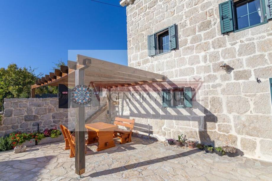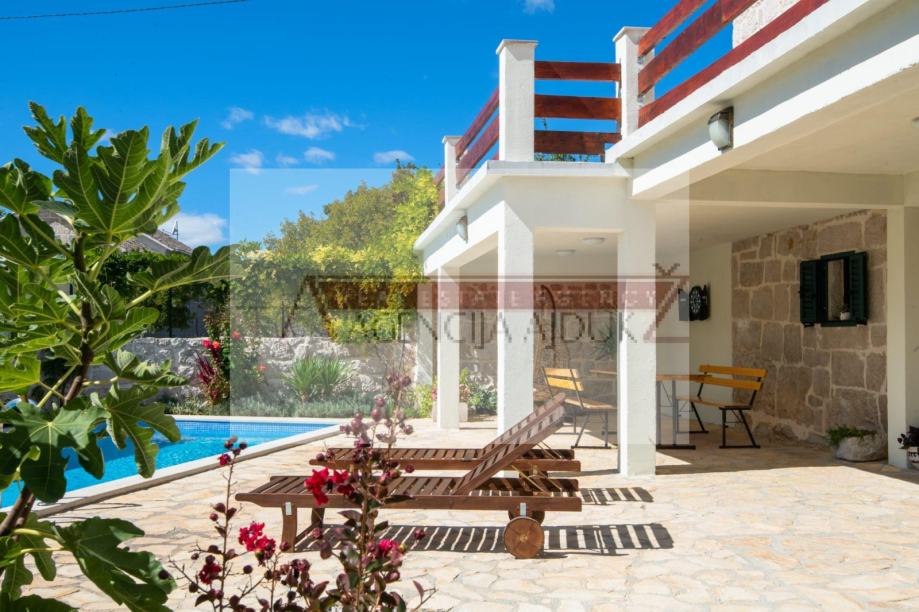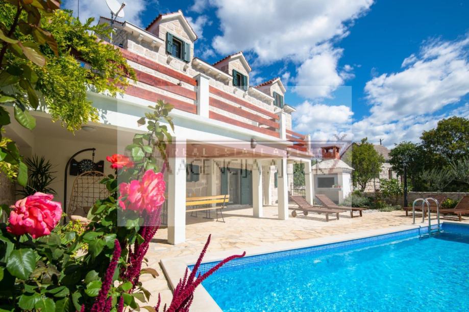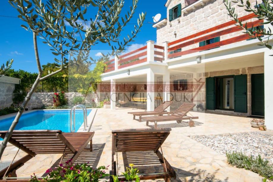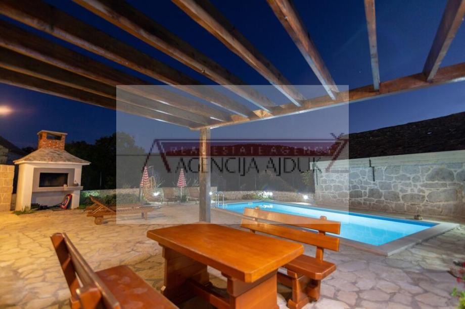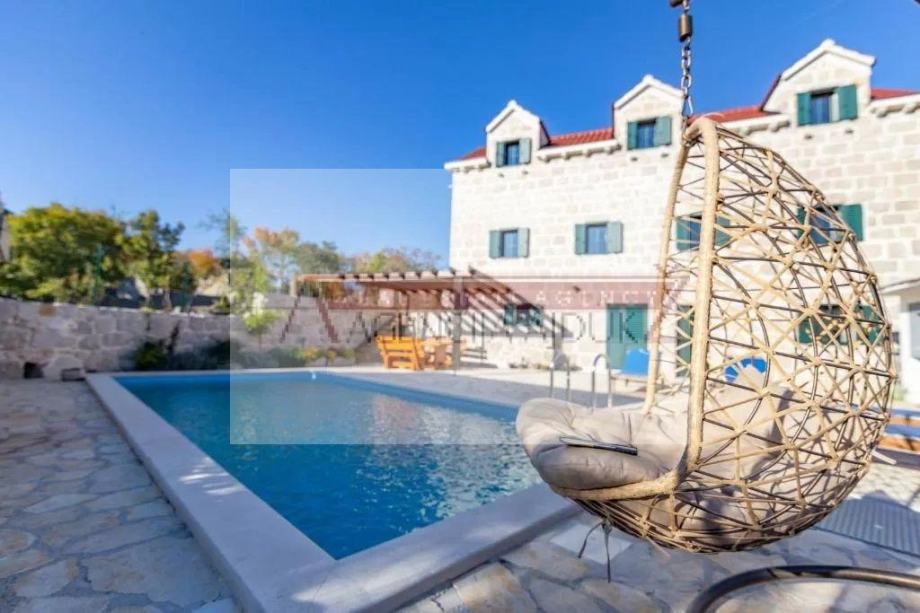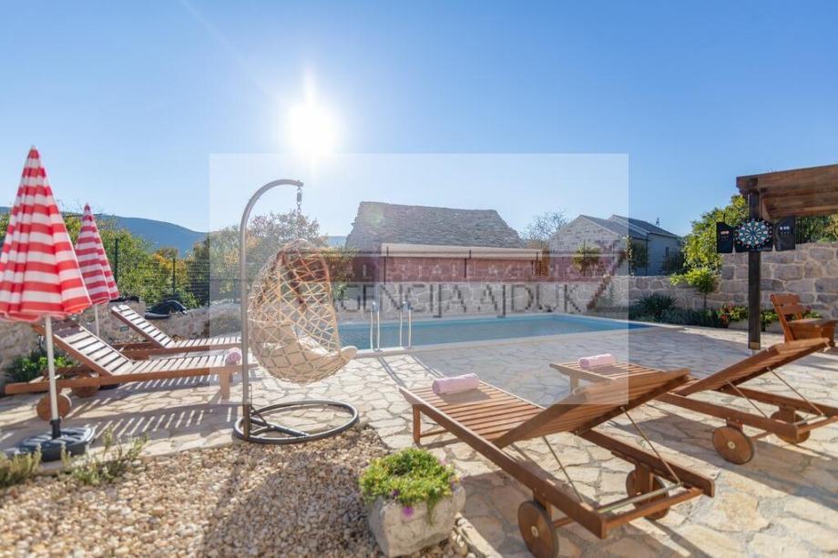 Prodaje se luksuzno opremljena vila sa bazenom u okolici grada Imotskog. Ukupna površina vile iznosi 190 m2 na tri etaže. Vila kao i kompletno imanje prilagođeno je u turističke svrhe te posjeduje sve potrebne sadržaje. Sastoji se od prizemlja, kata i potkrovlja (najmanja visina u potkrovlje iznosi 1,20m). Posjeduje 4 spavaće sobe, 4 kupaonice, dnevni boravak sa kuhinjom i blagovaonicom te sve popratne sadržaje za bavljenje turizmom. Ispred vile nalaz se bazen dimenzija 7m x 4,5m. Na preostalom dijelu okućnice od 1000 m2 ima dovoljno mjesta za izgradnju još jednog objekta, a na kojem zemljištu se nalazi uplanjena kamena kuća od 45 m2 koja posjeduje uporabnu dozvolu.