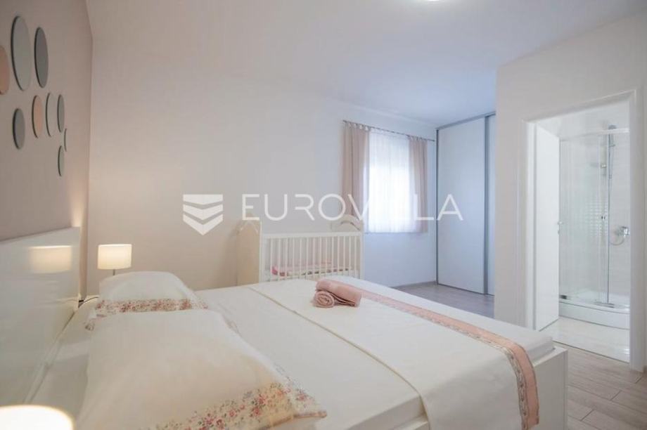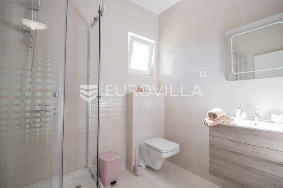 Prekrasna vila na dvije etaže, bruto površine 285 m2.Vila je klimatizirana u dnevnom boravku, te je provedeno grijanje na radijatore kroz cijelu vilu, kotao na pelet. Unutrašnjost se sastoji od 5 spavaćih soba, dnevni boravak, potpuno opremljenu kuhinju , te 4 kupaonice s tušem .Ova vila...