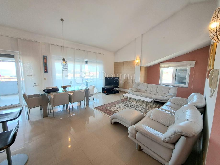 Prodaje se penthouse smješten u Pješčanoj Uvali. Ovaj stan okupan prirodnom svjetlošću pruža neto površinu od 111,39 m2, s prostranim dnevnim boravkom i moderno dizajniranom kuhinjom. Uz to, ovaj stan obuhvaća tri udobne spavaće sobe, dvije kupaonice s podnim grijanjem te prostrani hodnik. Važno je naglasiti da je stan u potpunosti namješten i kao takav se prodaje.