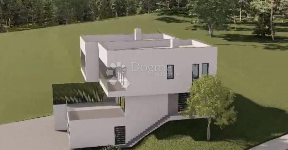 Ova suvremena vila s čistim linijama i ravnim krovom ističe se modernim dizajnom te pametnim rasporedom prostora. Dvoetažna kompozicija stana, staklene ograde koje povezuju interijer sa prirodom, natkrivene terase i elegantno integrirane garaže pružaju estetski sklad. Stanu pripada privatna garaža sa dva parkirna mjesta te vlastita uređena okućnica.