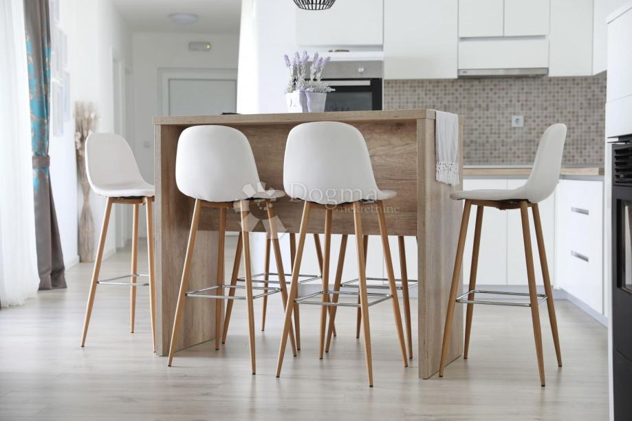 Kuća je potpuno opremljena i odmah useljiva, uključujući sve moderne aparate i vrhunski namještaj koji je uključen u cijenu. Posjeduje dva odvojena brojila za struju i vodu. Energetski certifikat A+ donosi maksimalnu energetsku učinkovitost. Uporabna dozvola ishodovana.