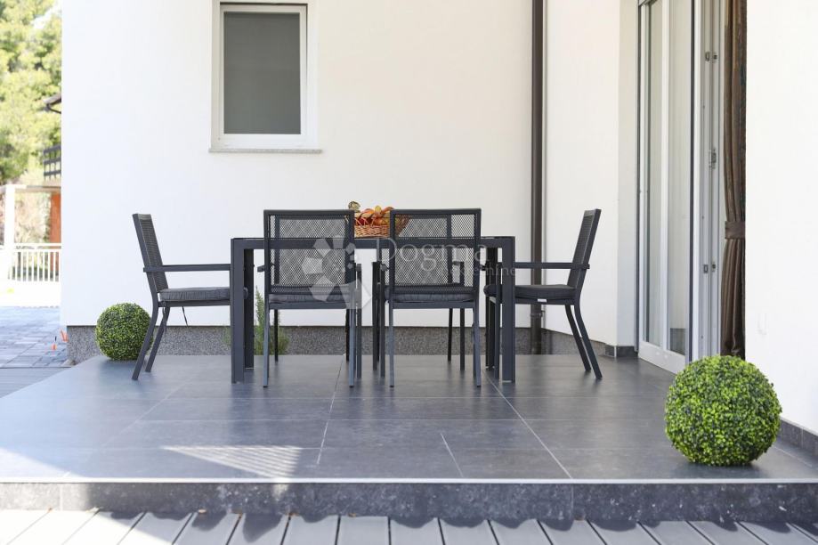 Poseban ugođaj pružaju dvije terase – jedna s elegantnom blagovaonicom na otvorenom, a druga s luksuznom jacuzzi kadom i predivnim pogledom na zelenilo i mirno prirodno okruženje stvarajući oazu za uživanje u zalascima sunca ili večernjem opuštanju.