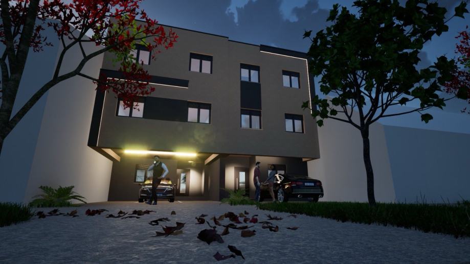 Zgrada ima jedinstven projekt koji pruža široki izbor rasporeda prostorija. U novogradnji u ponudi nalaze se još dva luksuzna stana četverosobni jednoetažni površine 76,36m2 na prvom katu i peterosobni dvoetažni na prvom i drugom katu. Stanovi imaju pripadajuće lođe. Sigurno je da ćete bilo kojim izborom dobiti moderno i kvalitetno izveden stan na mirnoj stambenoj lokaciji u blizini centra Gornjeg I Donjeg grada Osijeka. Osim lokacijom i kvalitetom, tvorci projekta žele udovoljiti željama i potrebama zahtjevnijih kupaca i širinom ponude stanova. Stanovi smješteni u stambenoj zgradi pozicionirani su na prvom i drugom katu. Svaki stan ima pripadajuće jedno parking mjesto u prednjem djelu dvorišta urbanih vila.