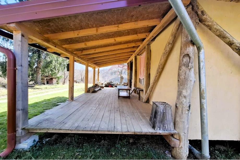 Prodaje se predivno ogromno imanje u srcu prirode, u čijem je središtu drvena kuća eko gradnje. Ovo veličanstveno imanje u Blatuši, ukupne površine 206500 kvadratnih metara djelomično se prostire na zelenim pašnjacima, a djelomično je pošumljeno. Obzirom da ima i građevinskog zemljišta nudi razne mogućnosti za investitore koji žele ulagati u razvoj ruralnog turizma Idealno je za zaljubljenike u prirodu, koji mogu pronaći svoj mir u ovom idiličnom malom mjestu, daleko od buke i gradske vreve, budeći se uz cvrkut ptica i pogledom na šumske životinje koje izlaze na pašu ili prolaze do obližnjeg potoka utažiti žeđ. Srce ovog imanja čini drvena kuća izgrađene 2011. godine, ukupne površine 114 m2, izgrađena od prirodnih materijala, opremljena solarnim pločama, dok se i otpadne vode prirodno pročišćava koristeći ekološke resurse koje nam daje priroda. Prizemlje se sastoji od dnevnog boravka s kuhinjom i kupaonom, dok su na katu smještene tri spavaće sobe od koji jedna ima balkon, i nude prekrasan pogled na okoliš. Tavanski prostor se također prema potrebi može preurediti u dodatne sobe.