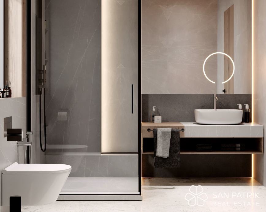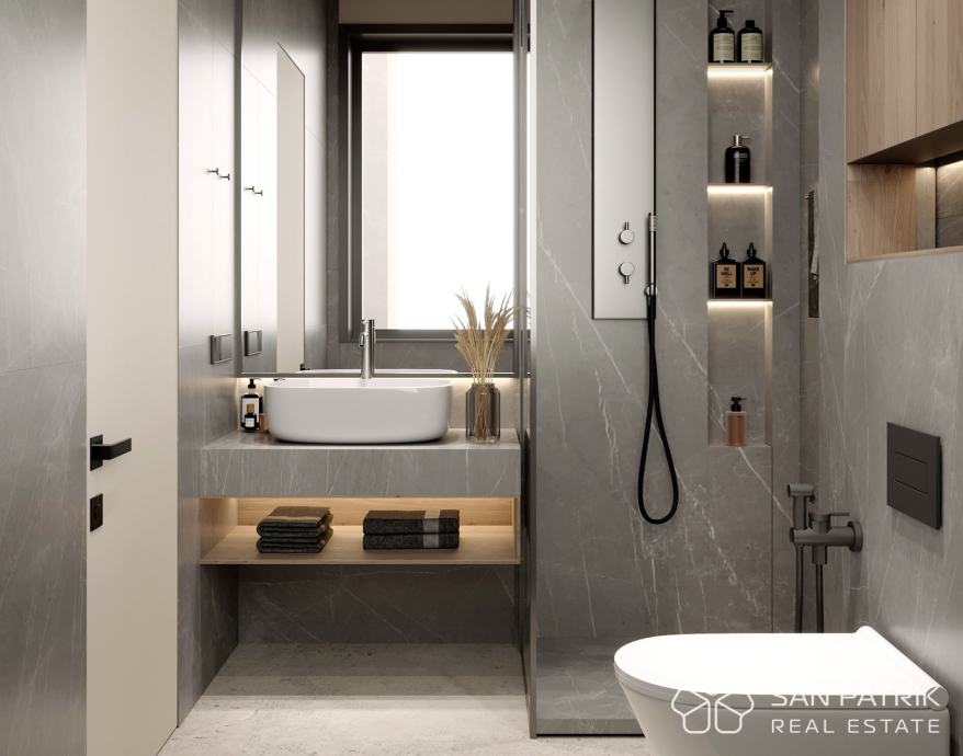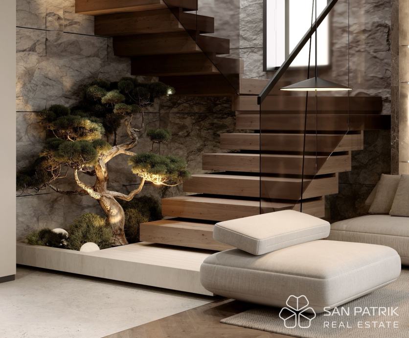Vila je projektirana za visoku razinu modernog stanovanja, s jasnim razdvajanjem dnevnog i privatnog dijela, elegantnim arhitektonskim linijama, izvrsnom funkcionalnošću prostora i obiljem prirodnog svjetla. Neto korisna površina od približno 187 m2 raspoređena je na tri etaže.