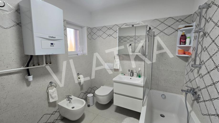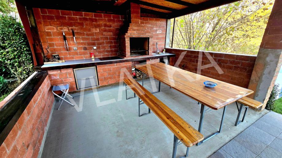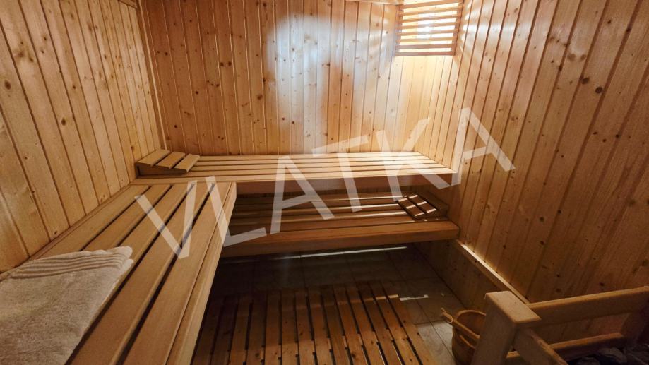 Stan u ravnini vrta (etaža -2) ima i saunu, a iz stana se izlazi na predivnu natkrivenu sjenicu za roštilj. U nastavku se nalazi obrađen, ograđen vrt s povrćem i voćkama.