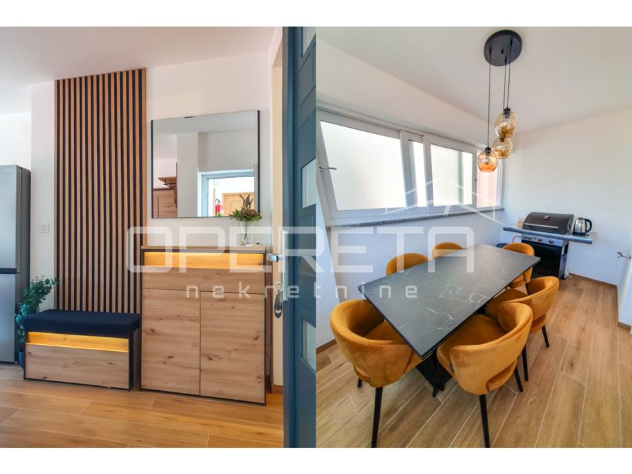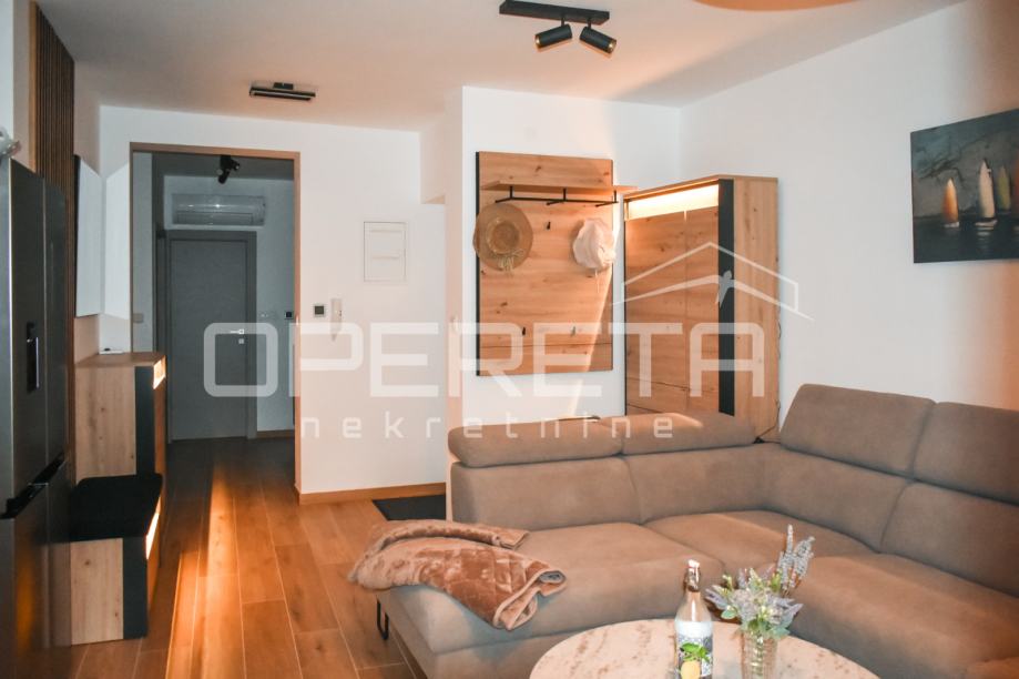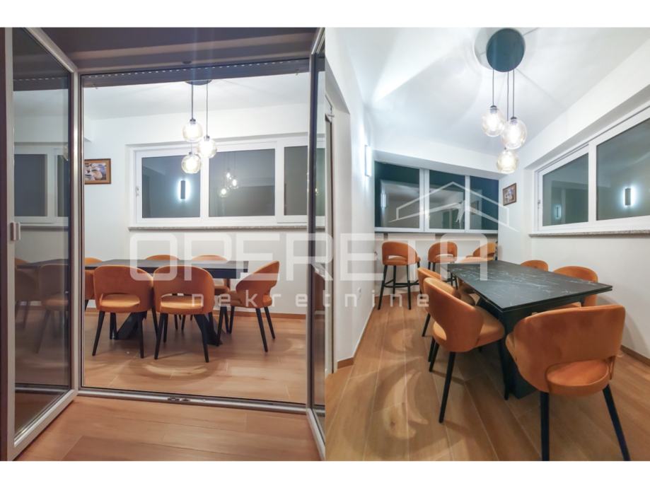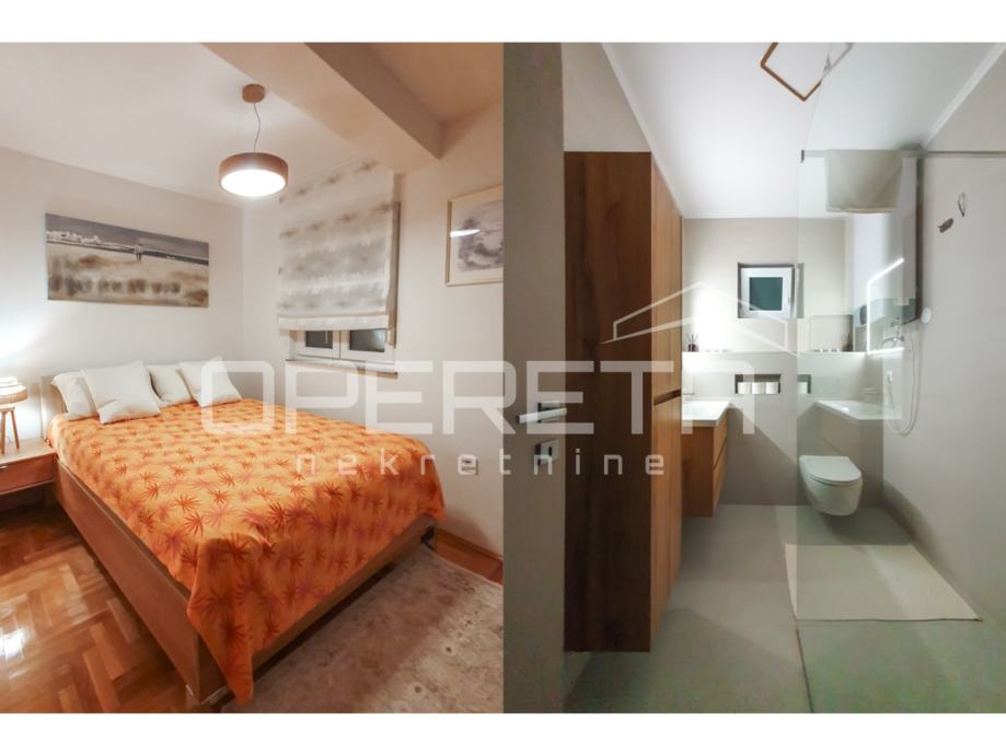 Stan je uređen 2024. godine, koristeći najkvalitetnije materijale i suvremene tehnologije, uključujući podno grijanje u dnevnom prostoru, kuhinji, kupaonici i hodniku, te pažljivo birane parkete u spavaćim sobama.