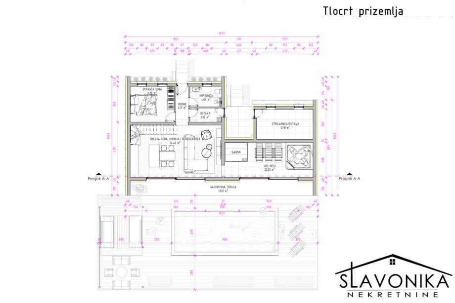 Idejno rješenje, s ishdovanom aktivnom građevinskom dozvolom, te pripadajućim kako građevinskim, tako i strojarskim projektima, te kompletnim troškovnikom, uz mogućnost izvođenja radova kompletnog projekta, do ključa u ruke ( u skladu s dogovorom ).