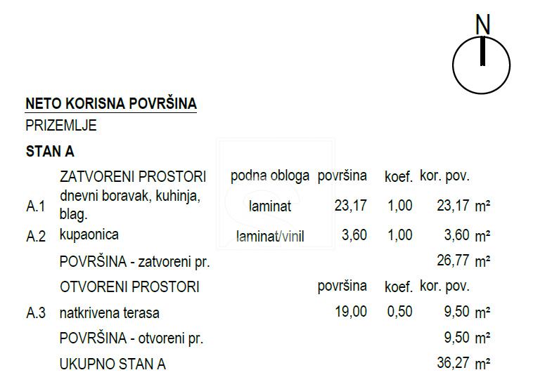 - parkirno mjesto: 12m2 (po koeficijentu 0,25 =3m2)