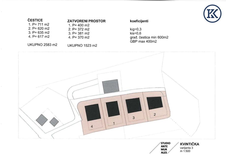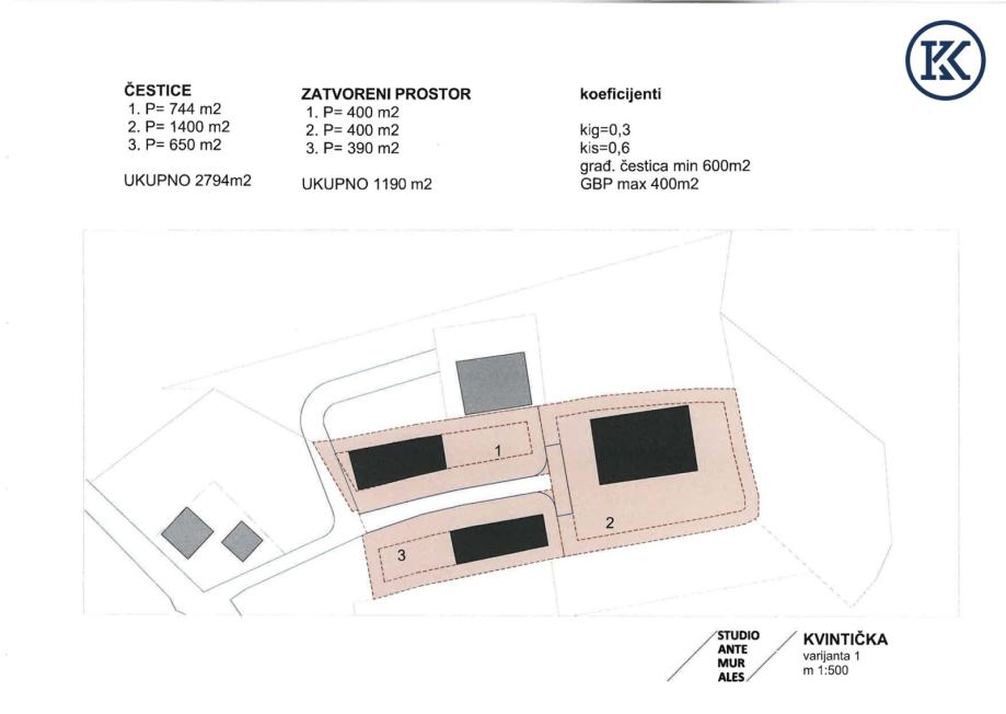 Arhitektonska studija već je izrađena i otvara razne mogućnosti gradnje: moguće je izgraditi dvije do četiri kuće, svaka s približno 400 m² bruto stambene površine, što ukupno omogućuje do 1.600 m² bruto korisne stambene površine. Ideje za korištenje kreću se od privatnih stambenih kuća do projekata poput doma za starije osobe.