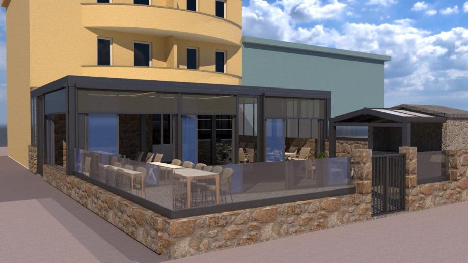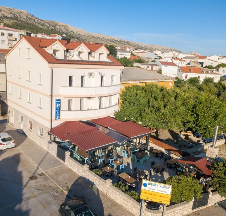 Na prodaju je višekatna zgrada površine 770 m² (terasa 166 m2, objekt ukupno 604 m2), izgrađena 2001. godine, s posljednjom adaptacijom 2025. godine - najvažnija od kojih je adatacija nastrešnice/pergole (projekt se vidi na slikama). Objekt se nalazi u centru grada Paga, na otoku Pagu, prvi red do mora. Objekt se sastoji od 10 apartmana za turistički najam s predivnim pogledom na more i udaljenosti od plaže na samo 50m, te restorana u sklopu zgrade, što ga čini savršenim za vođenje uhodanog poslovanja ili daljnju turističku investiciju.