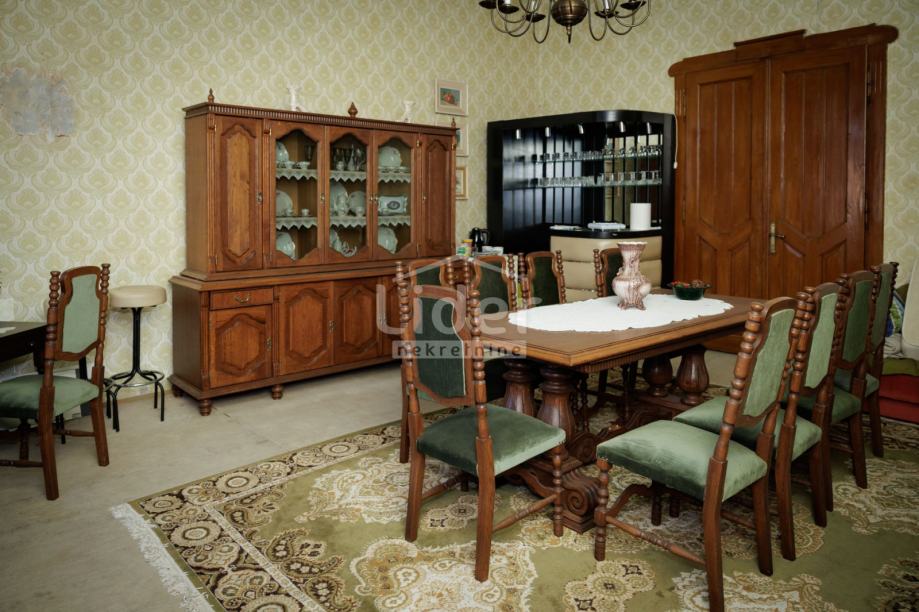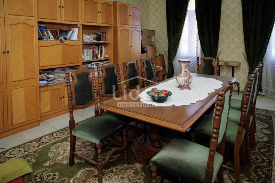 Ukupno 340 m2 stambene površine podijeljeno je na poslovni i stambeni dio. U suterenu kuće nalazi se podrum od 60 m2,