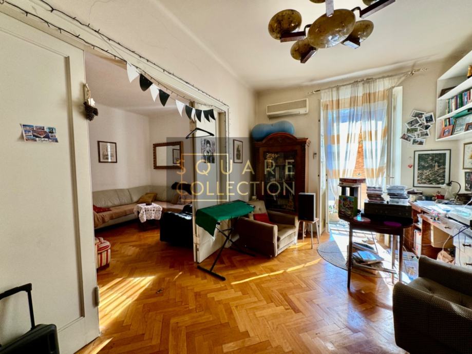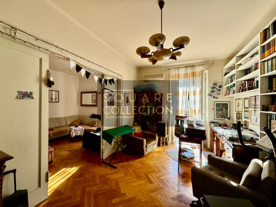Stan ima površinu 121 m2, stan trenutno nudi tri spavaće sobe, kupaonicu, toalet te kuhinju s blagoaonicom i izlazom na istočni balkon, sa pogledom na stražnji zajednički vrt zgrade, stan ima i zapadni balkon sa pogledom na ulicu. Čitav prostor ostavlja lijep dojam pravog gradskog stana, sa visokim prozorima i izrazito visokim stropovima 3,2 metra.