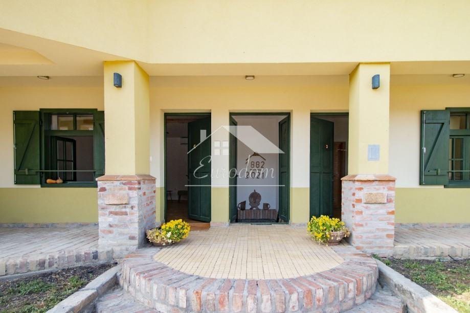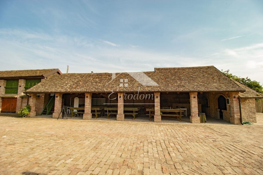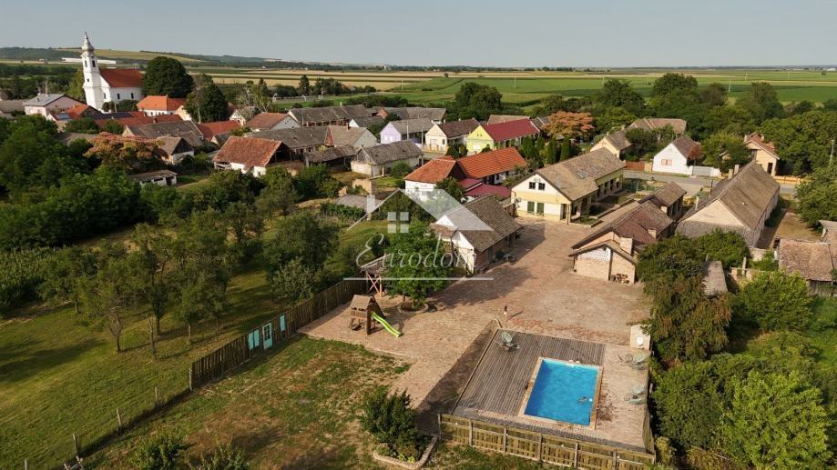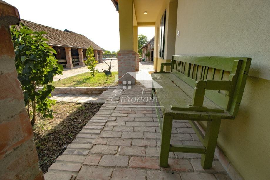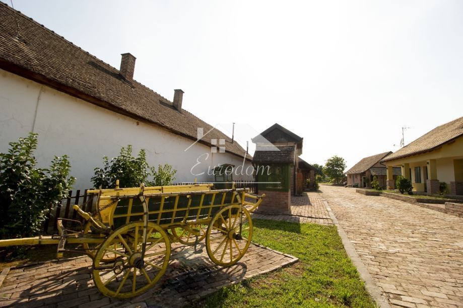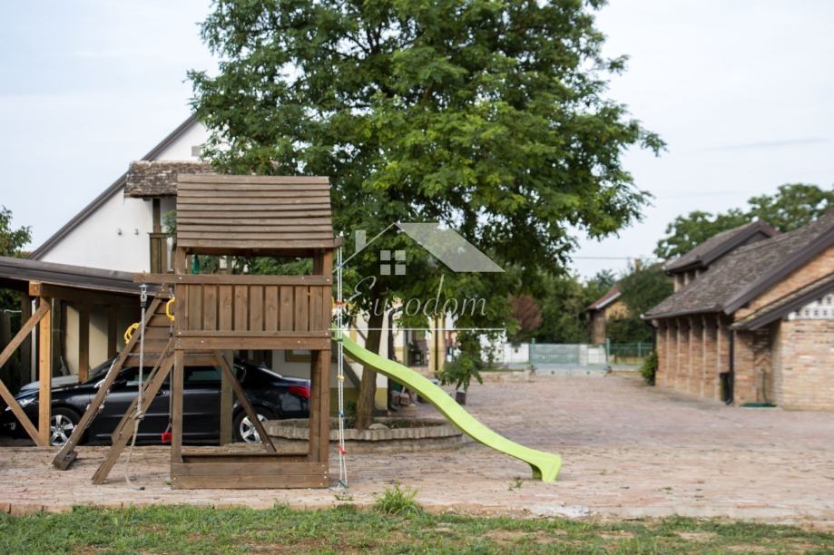 Pored bazena nalazi se natkriveno parkiralište i potpuno opremljeno dječje igralište. U nastavku imanja prostire se voćnjak sa cca 250 stabala voćaka i orašastih plodova, bio vrt i kompostana. Kompletno imanje je popločeno izvornom starom ciglom, ograđeno starom hrastovom ogradom, a izvorna ulazna ograda i kapija koja datira još iz 1882. i po narudžbi je izrađena u Mohaču, obnovljena je i osuvremljena elektromotornim pogonom za otvaranje.