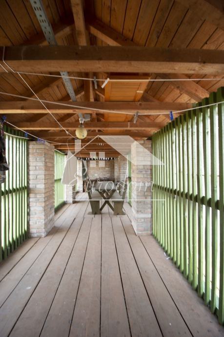 Druga pomoćna zgrada sastoji se od čardaka (štaglja) čija je gornja etaža pretvorena u zasebnu prostoriju za druženje posebno ugodnu u vrućim ljetnim mjesecima. Prizemna etaža sastoji se od tri servisne prostorije od koje su dvije spremišta alata i opreme za održavanje imanja a treća je smočnica opremljena vitrinskim hladnjakom i zamrzivačem. U produžetku čardaka izgrađena je zatvorena natkrivena terasa opremljena krušnom peći, roštiljem i ognjištima za kotliće, zimskim grijalicama, šankom s priključcima za struju i vodu te klupama i stolovima s kapacitetom za 60 ljudi.