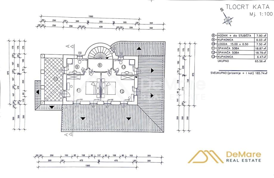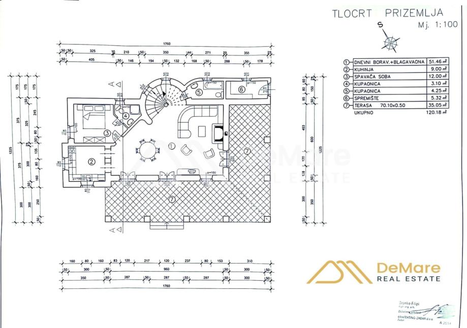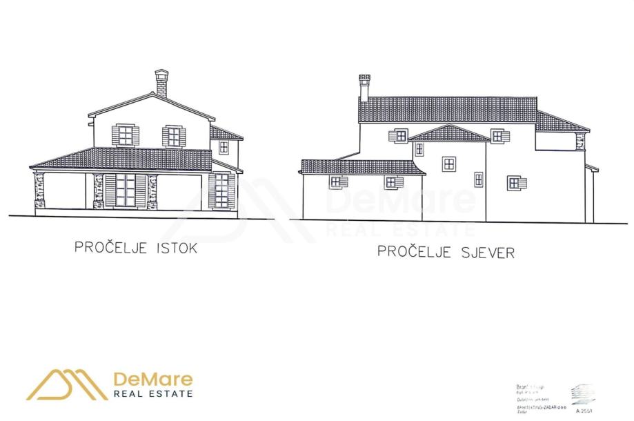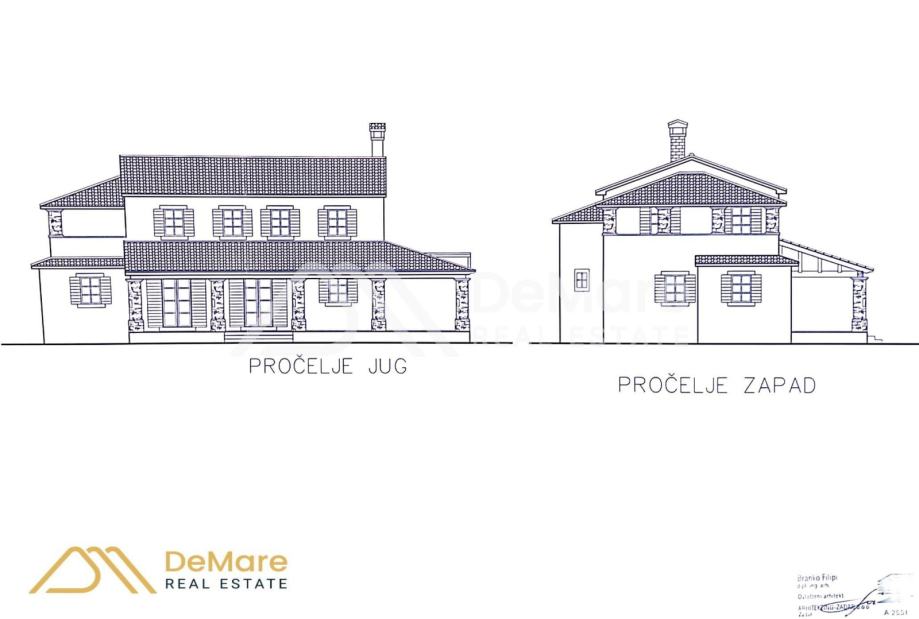 Građevinska dozvola izdana je prema projektu za atraktivnu kuću za odmor, koja se sastoji od: prizemlja u kojem se nalaze ulaz i spremište, spavaća soba, 2 kupaonice, toalet, hodnik, kuhinja s blagovaonicom i prostrani dnevni boravak iz kojega se izlazi na natkrivenu terasu i dvorište. Na katu su projektirane jos 2 spavaće sobe sa vlastitim kupaonicama i jedna loggia.