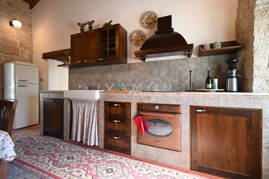 Svaka je prostorija klimatizirana, a postavljeno je centralno grijanje (nedostaje kotao). Kuća je uređena i namještena vrlo stilski i rustikalno, te je moguć dogovor oko namještaja.