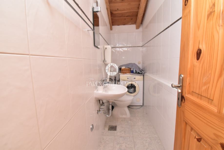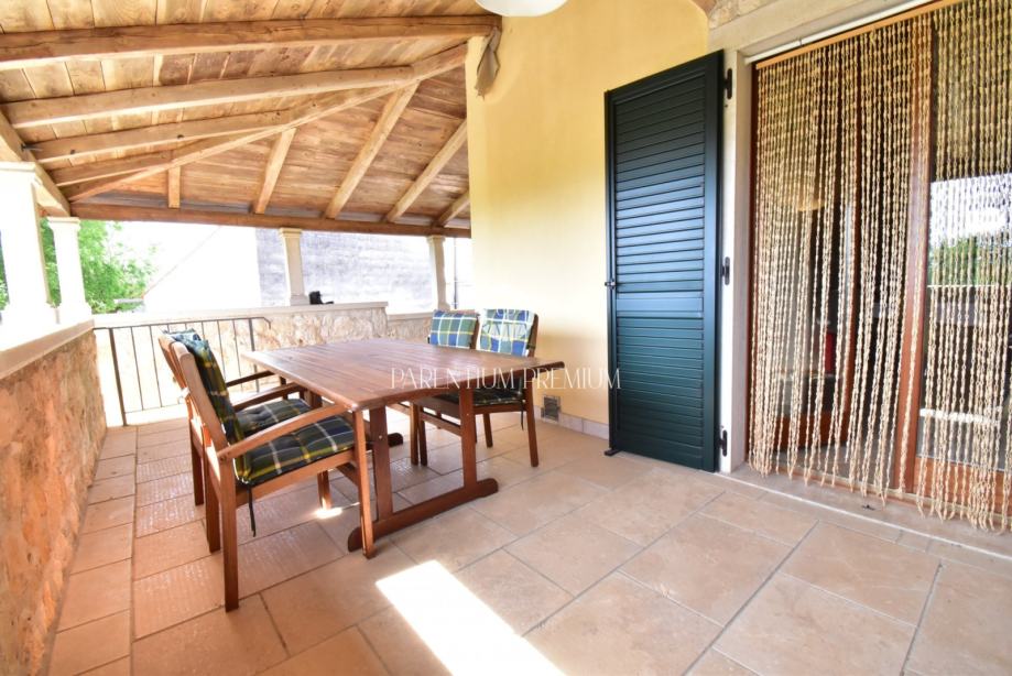 U prizemlju se nalazi dnevni boravak sa kaminom, blagovaonica, WC, ostava. Iz dnevnog boravka izlazi se na jako prostranu natkrivenu terasu koja pruža pogled na more i okolno zelenilo.