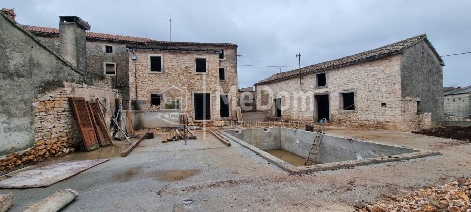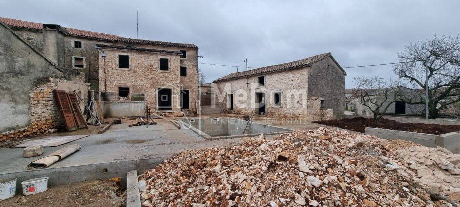Prodaje se kompleks istarskih kuća u općini Žminj, stambene površine 160m2. Kući pripada i nekoliko pomoćnih objekata koji se mogu prenamijeniti u različite svrhe. Uz kuću predviđen je i bazen. Istaknuta cijena je za ovu fazu renoviranja. Kuća je u pitomom istarskom selu koje je udaljeno od Žminj i od autoceste 10 minuta vožnje. Idealno za one koji se žele maknuti od gradskih gužvi i uživati u miru, prirodi i lokalnoj hrani centralne Istre. Cijena i ostale informacije na upit. Kupac ne plaća proviziju agenciji.
