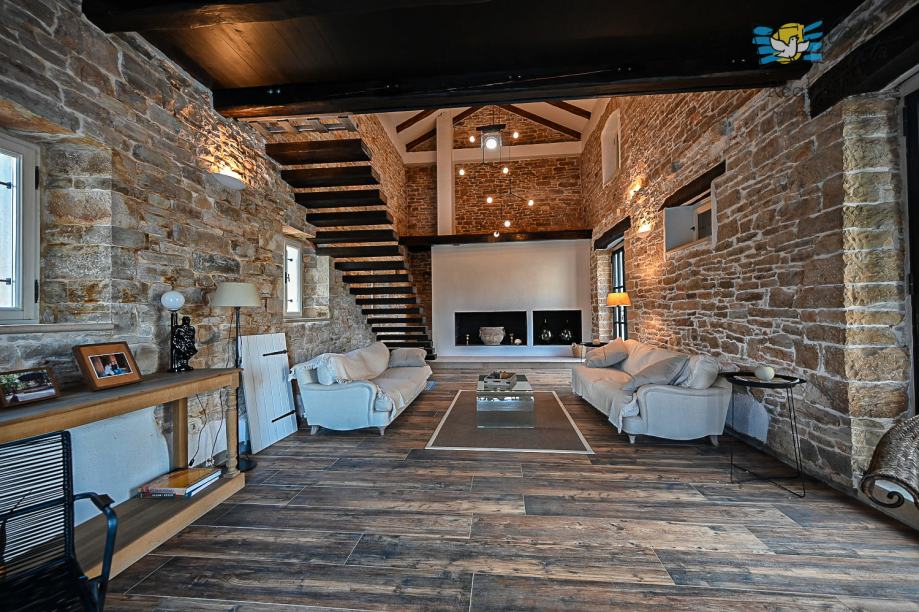 Ova samostojeća kamena kuća prostire se na impresivnih 664 m2 (sa terasama i projektom modernog dizajna kojeg je potrebno završiti.)