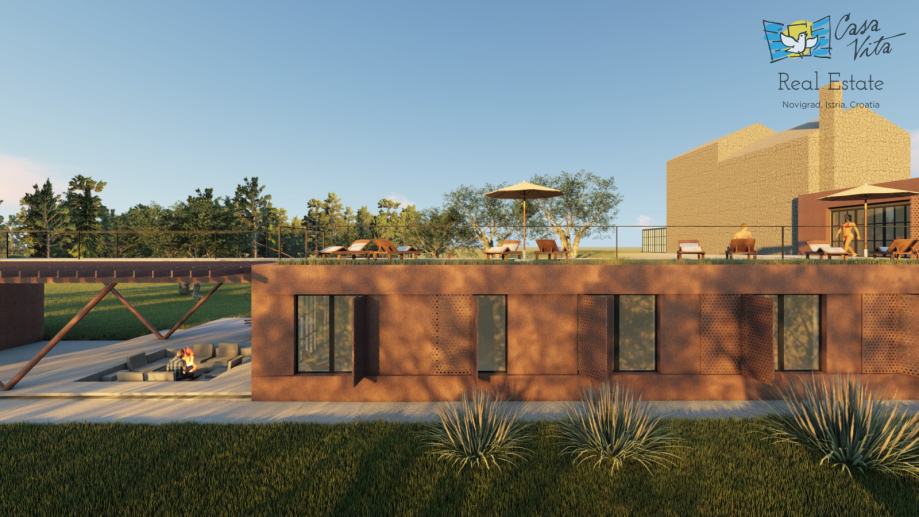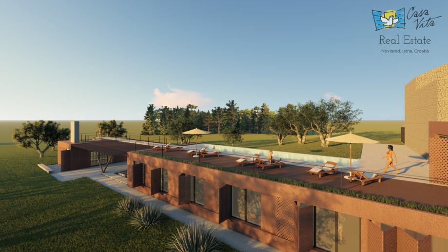 Novi projekt sastoji se od uistinu velikog i komfornog bazena (70m2), te dodatnih prostorija za uživanje i relax kao što su sauna i spa zona, zimski vrt, zona za multimediju i zabavu, lounge, dodatna blagovaona s kuhinjom od 40m2, vinoteka i pit fire.