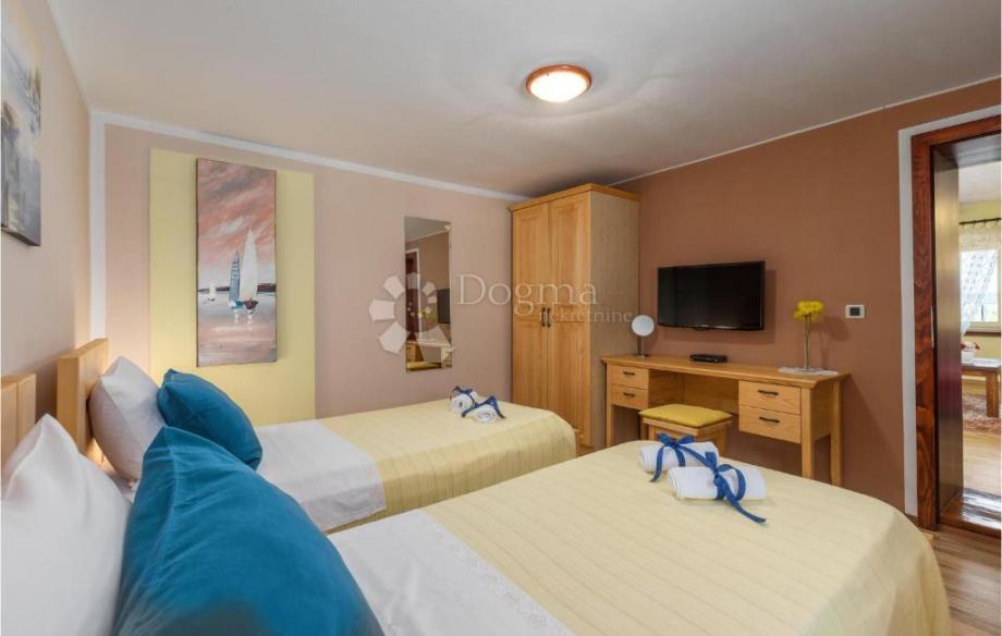 Na prostranoj okućnici od 1570 m² nalaze se dvije zasebne građevine – renovirana istarska vila s bazenom i apartmanska kuća s tri stambene jedinice.