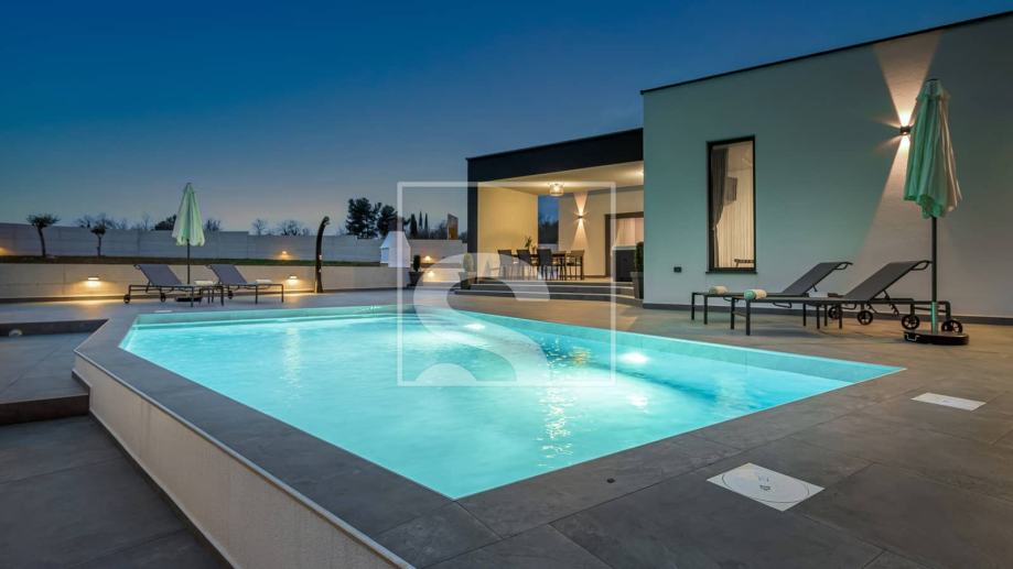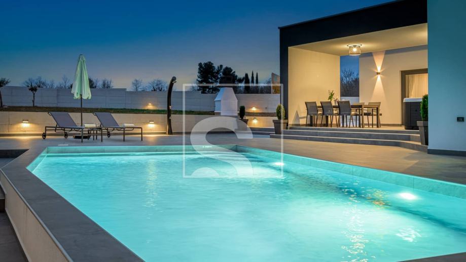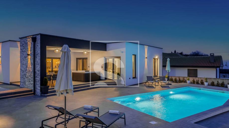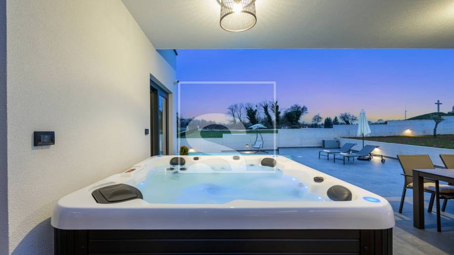 Posebnu vrijednost ovoj nekretnini daje njezin impresivan wellness sadržaj. Privatni bazen, jacuzzi, sauna i moderno opremljena teretana pružaju potpun doživljaj luksuza i opuštanja, stvarajući vlastitu zonu mira i regeneracije. Svaki detalj vile pažljivo je osmišljen – od čistih arhitektonskih linija do suvremenog dizajna koji savršeno spaja estetiku i praktičnost.