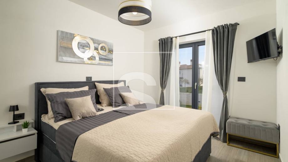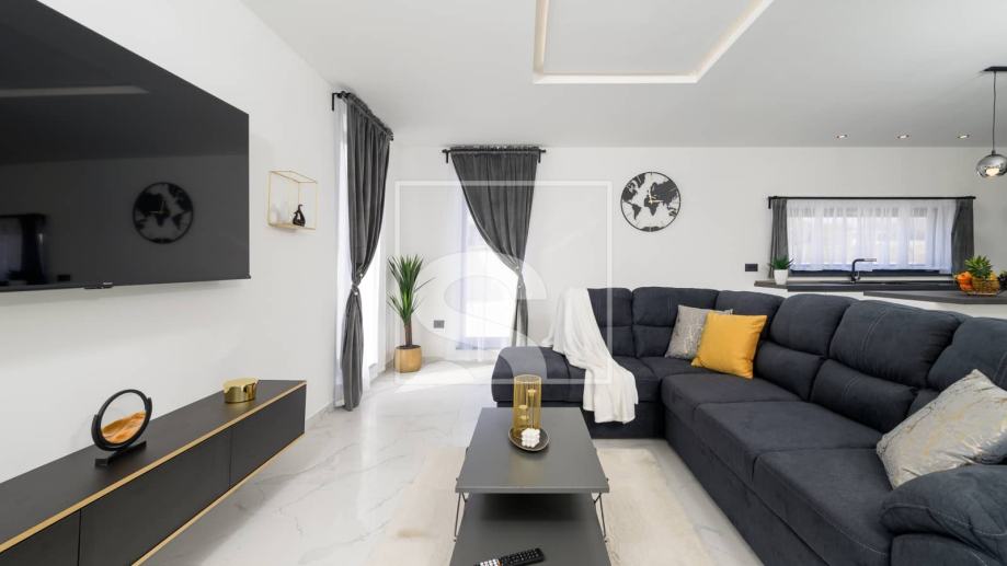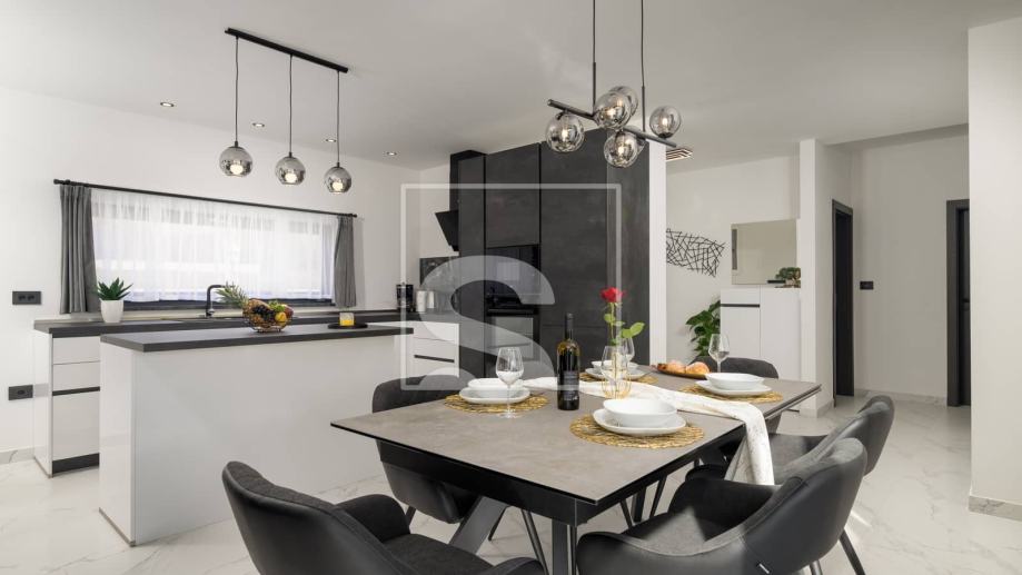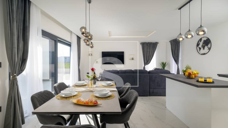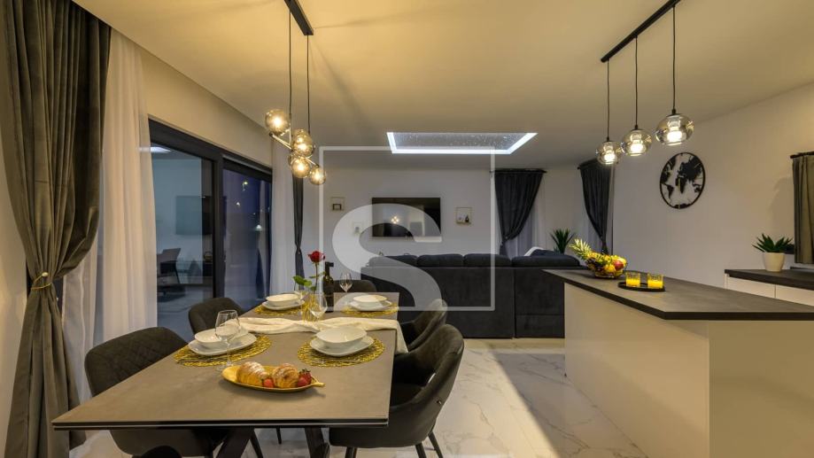 Vila je osmišljena s naglaskom na udobnost i funkcionalnost, a njezin prostrani dnevni boravak povezan s moderno opremljenom kuhinjom i blagovaonicom čini središnje mjesto okupljanja, idealno za opuštanje i druženje. Dvije sofisticirano uređene spavaće sobe te dvije elegantne kupaonice osiguravaju maksimalan komfor i privatnost.