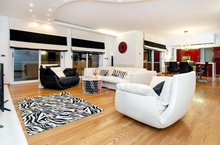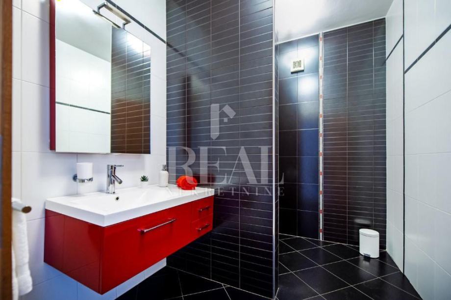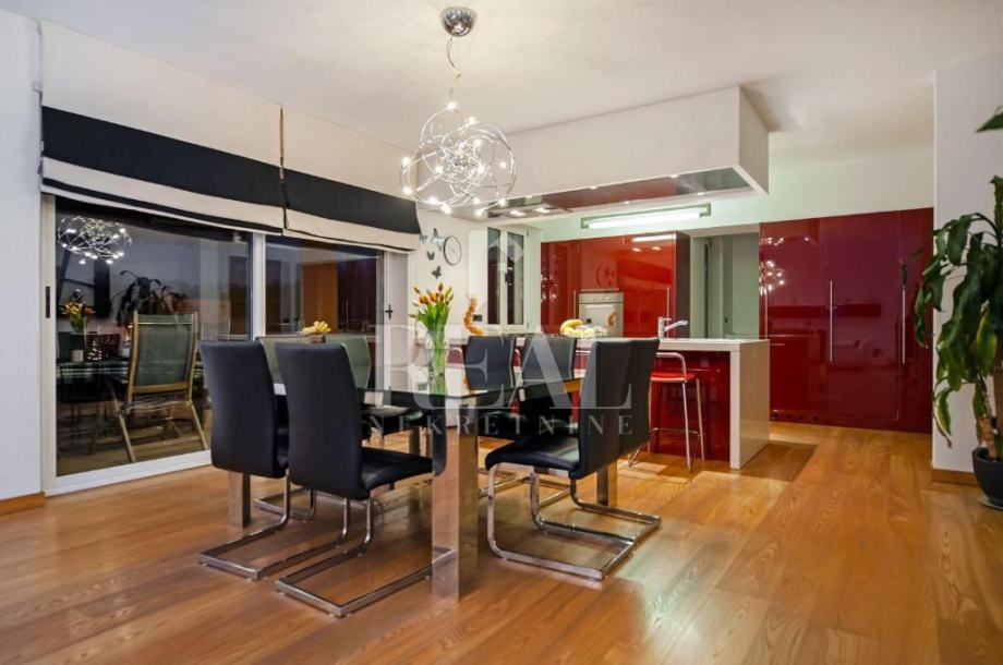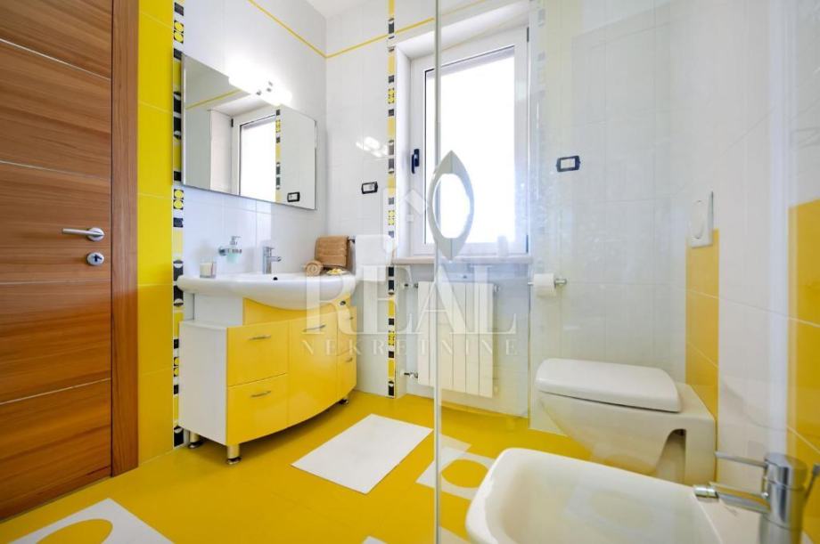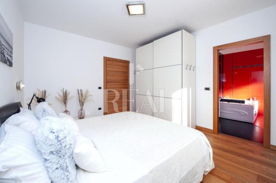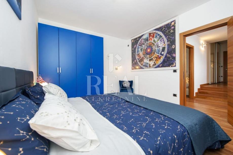 Nedaleko od prekrasnog Rovinja smjestila se ova moderna villa od 550m2 stambene površine. Nalazi se u obiteljskom susjedstvu udaljena svega 5 km od rovinjskih plaža, restorana i trgovina. Prostire se na dvije etaže, u prizemlju je smješten apartman sa jednom spavaćom sobom, kuhinjom i dnevnim dijelom te spavaćom sobom i kupaonicom. Uz apartman je i veća konoba sa kaminom i direktnim izlazom na bazen te uređenu okućnicu. Na prvom katu su kuhinja sa dnevnim dijelom i blagavaonicom, tri spavaće sobe, dvije kupaonice te velika natkrivena terasa. Grijanje je na klima uređaj i plinsko etažno .Kompletno je opremljena te u funkciji ljetnog najma. Prednost objekta je i velika okućnica od 1970m2 na kojoj je smješten grijani bazen i koja pruža potpunu privatnost i mir.