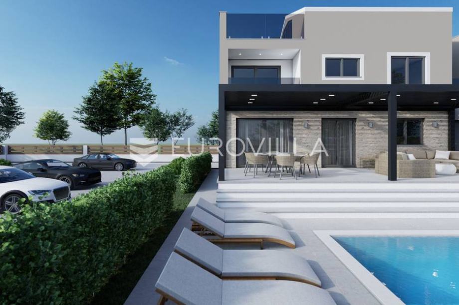 In a small settlement near Baderna, this family house with a swimming pool is under construction.House "C" consists of ground floor, first floor and attic, living area 170m2 and 350m2 garden, the third in a row.The ground floor has a covered porch, hallway, guest toilet, two storage rooms, pantry,...