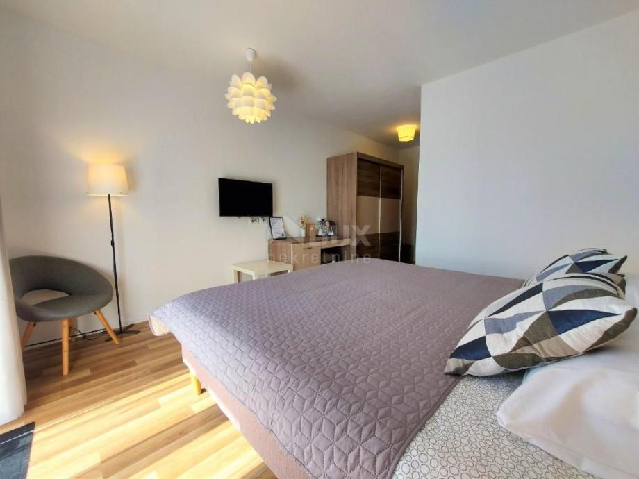 Na ulazu u vilu nalazi se manje predvorje koje povezuje sve etaže kuće unutarnjim zajedničkim stubištem, dalje se kroz privatni prolaz smjestio izdvojeni apartman koji se sastoji od hodnika, a koji povezuje dvije veće izdvojene spavaće sobe od 25m2. Svaka od tih spavaćih soba posjeduje vlastitu kupaonicu i pristup okućnici s bazenom. Ono što je zanimljivo za sve koji traže priliku za turističku investiciju, upravo je to što svaka od ovih izdvojenih spavaćih soba može biti tretirana kao zasebna jedinica za turističku rentu.