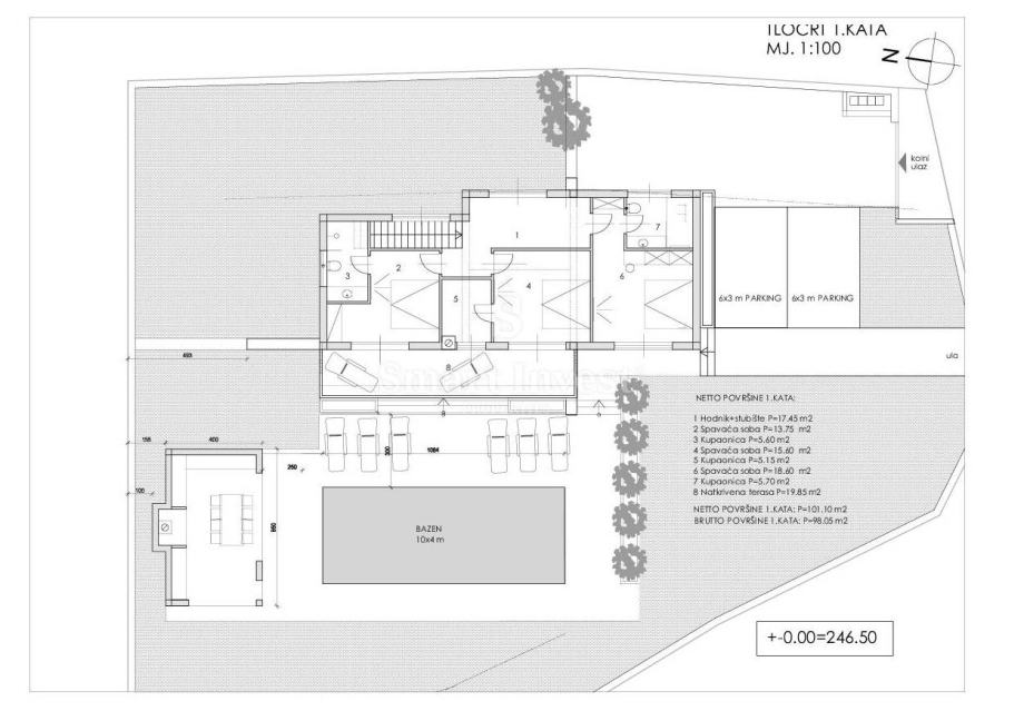 Vila površine 208 m2 smještena je na zemljištu površine 889 m2, ima 3 spavaće sobe, 3 kupaonice + 1 WC.