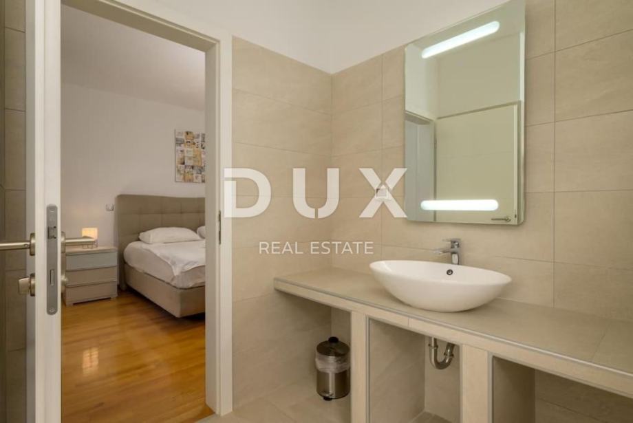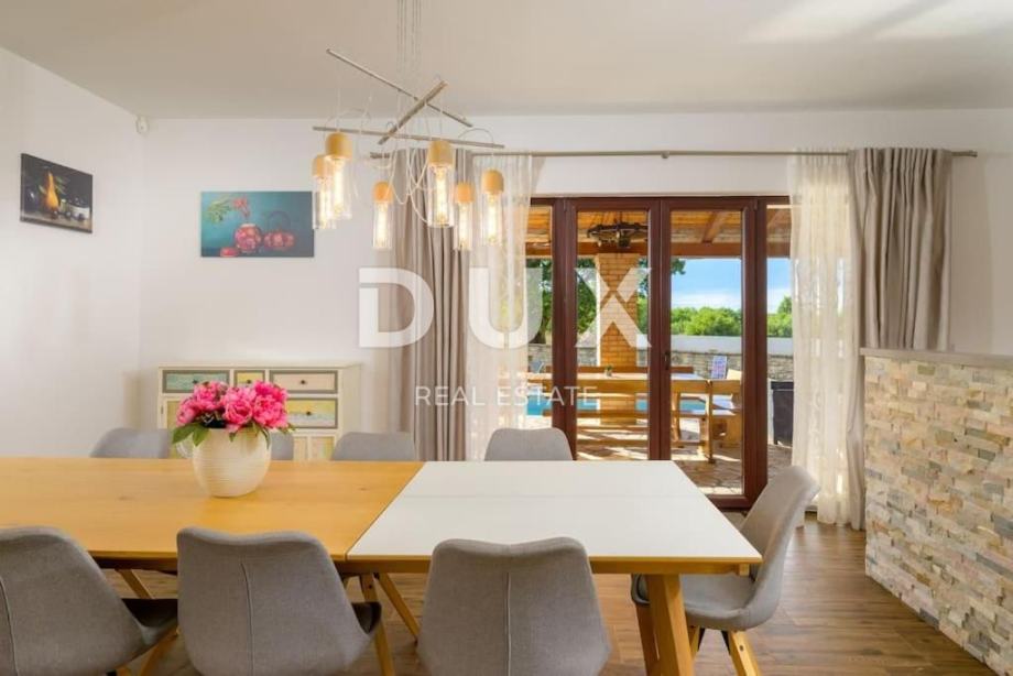 Vila odiše stilom i pažnjom prema detaljima, a vanjski prostor je prava oaza: veliki bazen sa sunčalištem savršeno je mjesto za uživanje u toplim, ljetnim danima. Okućnica je pažljivo uređena, a dodatni vanjski WC i privatni parking doprinose funkcionalnosti i udobnosti.