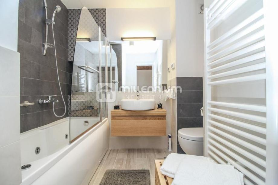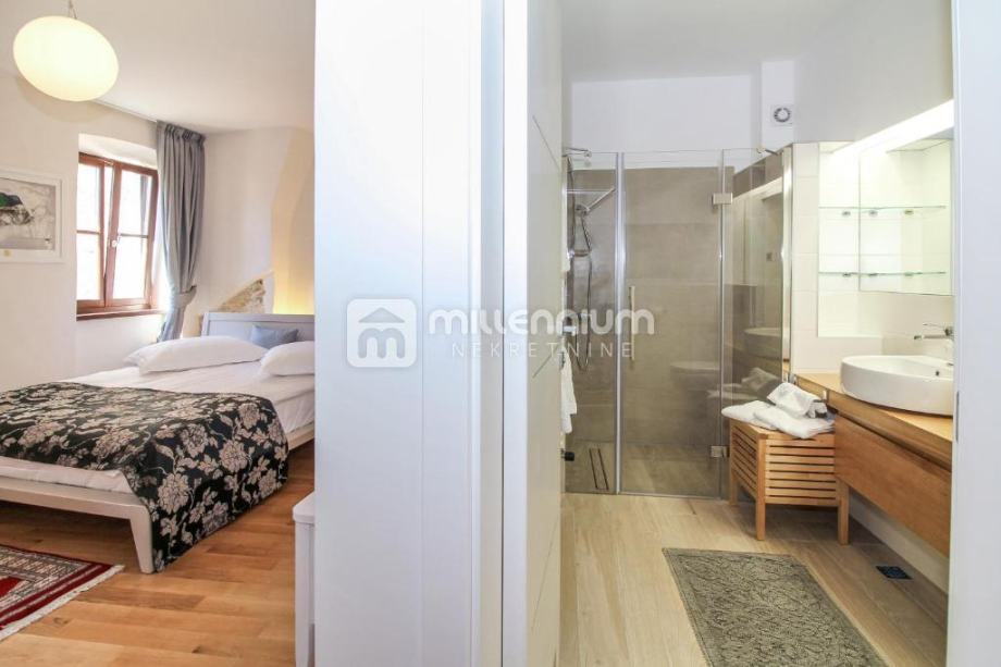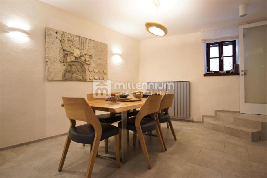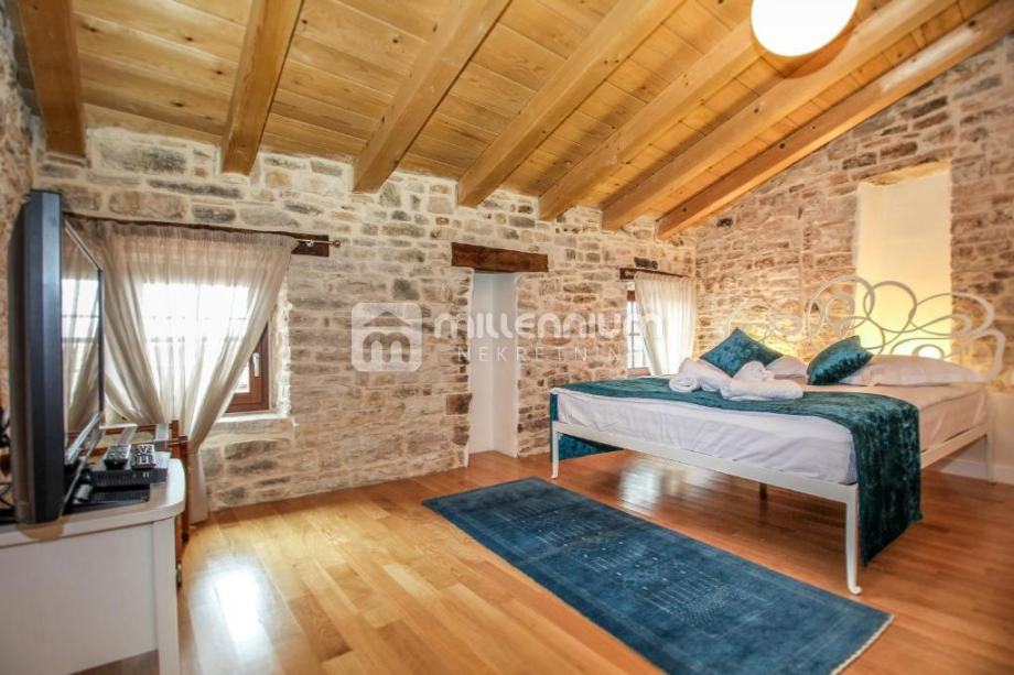 Interijer je uređen kombinacijom modernog i luksuznog te rustikalnog stila (kameni detalji, stropovi s gredama) pa vila odiše toplinom i gostoljubivošću.