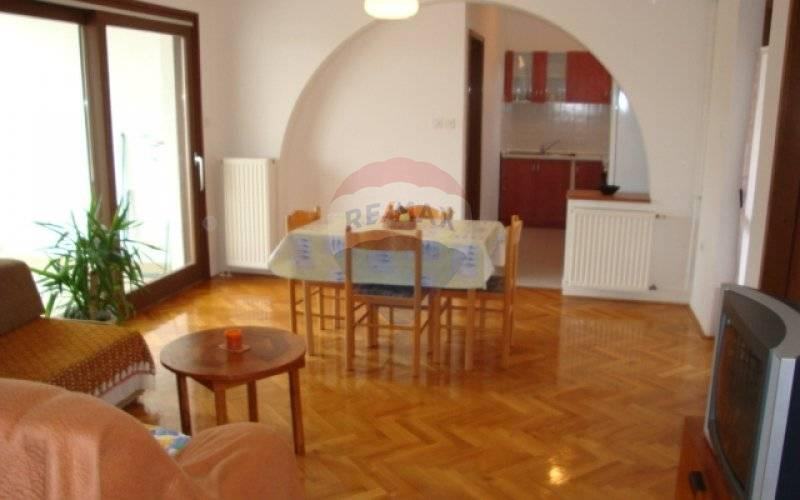Na 300 m udaljenosti od mora, okružena zelenilom i mirisom borova prodaje se apartmanska kuća površine 870 m2. Kuća ima 7 potpuno opremljenih apartmana koji se sastoje od dvije spavaće sobe, kuhinje s blagovaonom, kupatila i balkona ili lođe. Svaki apartman ima klima uređaje i centralno plinsko grijanje. U prizemlju nalazi se veliki poslovni prostor, zamišljen kao piano bar, s kuhinjom, kaminom, toaletom, garderobom i toaletom za osoblje. Kuća ima 3200 m2 okućnice sa garažom, 2 zidana roštilja i veliki bunar za vodu. Nekretnina vrijedna pažnje s velikim potencijalom-već odlično uhodanim poslom iznajmljivanja apartmana uz mogućnost bavljenja ugostiteljstvom i gradnje dodatnih sadržaja poput bazena i slično.