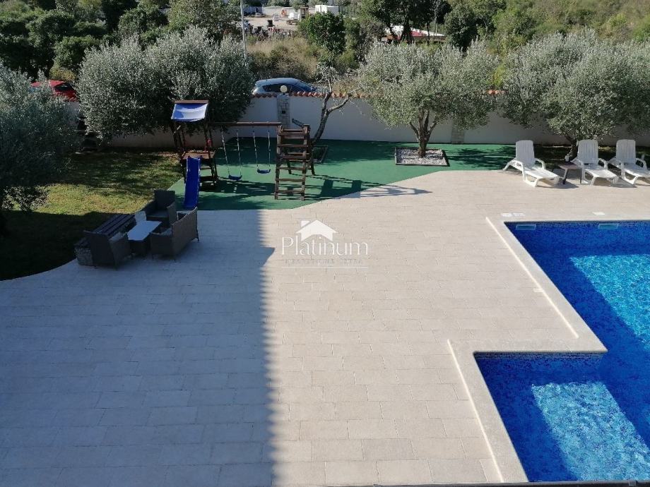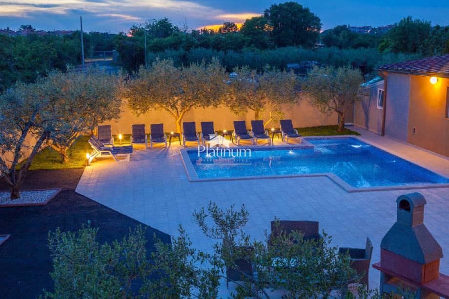 Na okućnici se nalazi bazen površine 75m2, četrdesetak maslina i pomoćni objekt od 225m2 koji se može urediti kao welness i nadograditi smještajni kapaciteti.